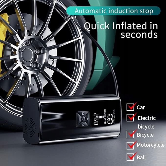 Благодаря двойному дисплею он был протестирован при высокой температуре и высоком давлении, и текущее давление в шинах можно отобразить, вставив накачивающую насадку в вентиль шины, чтобы обеспечить точность измерений.