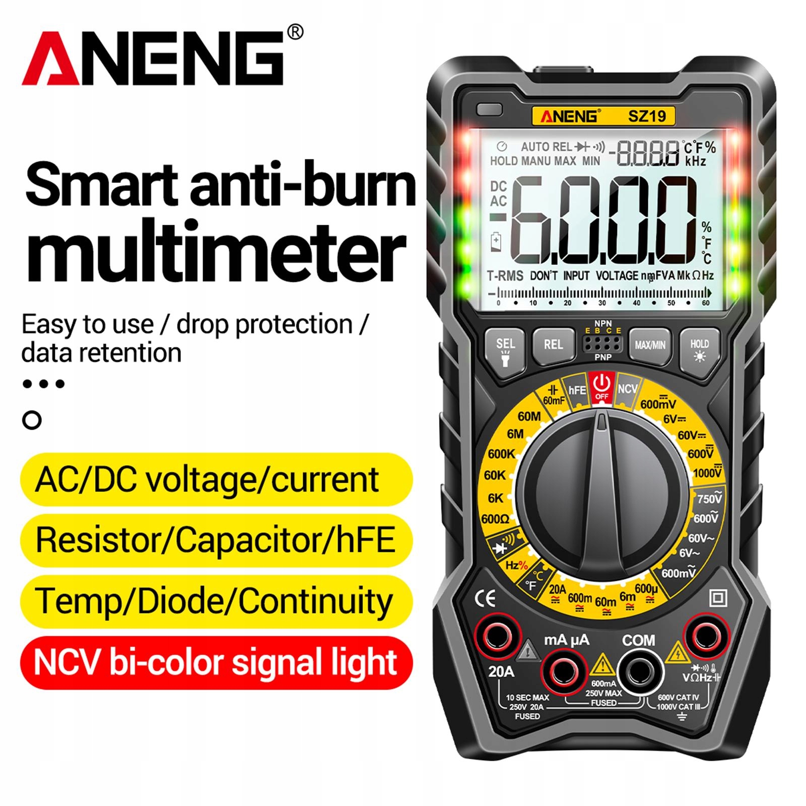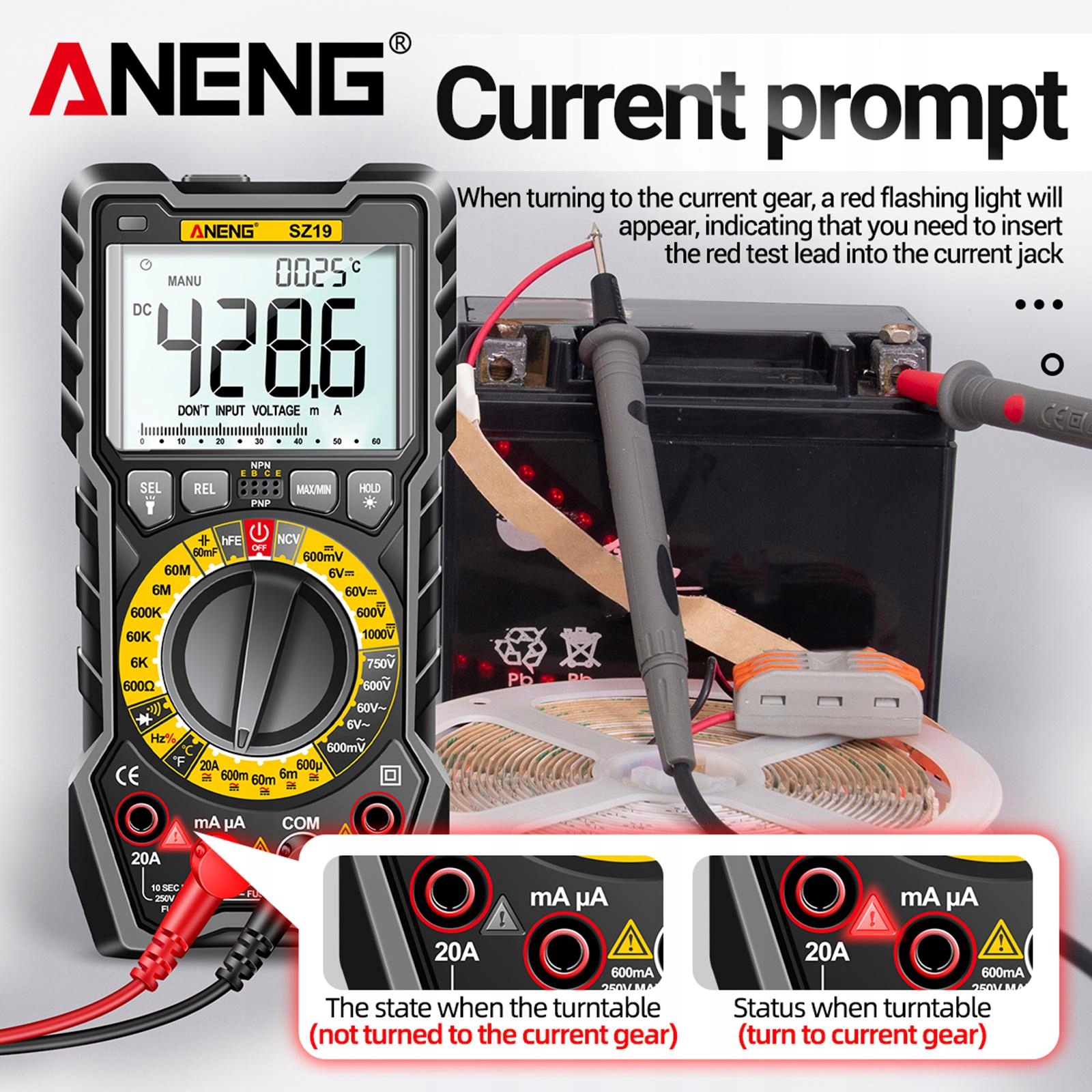 : портативный, легкий и удобный для переноски на открытом воздухе высокая точность с подсветкой высокого разрешения с фонариком функция портативный цифровой, который может измерять напряжение, ток , сопротивление, емкость и т. д. Дизайн слота для ручки с гнездом для ручки на спине, точный и кронштейн эффективно поддерживает дисплей с подсветкой значение экрана четко видно в темной среде и позволяет сохранить текущие данные о размерах: около 18,05 см х 9,05 см х 5,62 см/7,11 3,56 2,21