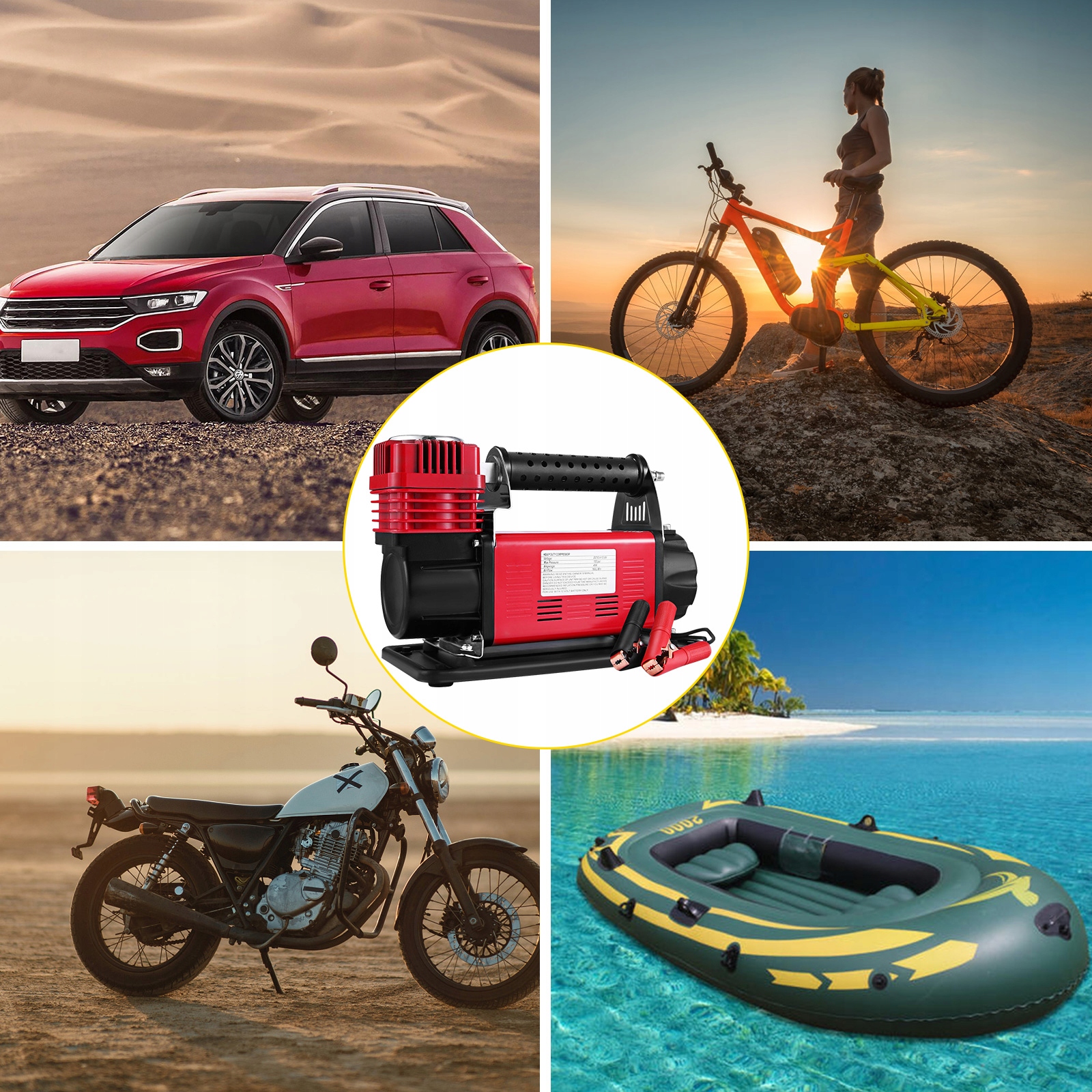 широкое применениепортативный компрессор подходит для внедорожников, грузовиков, фургонов, кемперов, кроссоверов, MPV, кемперов, прицепов, минивэнов, автомобилей, мотоциклов, тележек для гольфа, велосипедов и многого другого.п>