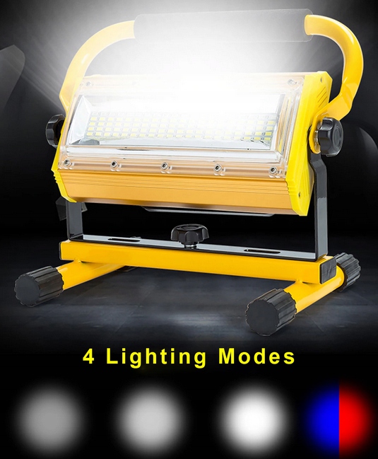 в комплекте: прожектор со встроенным источником света, подставка, зарядное устройство 230 В, автомобильное зарядное устройство 12 в
