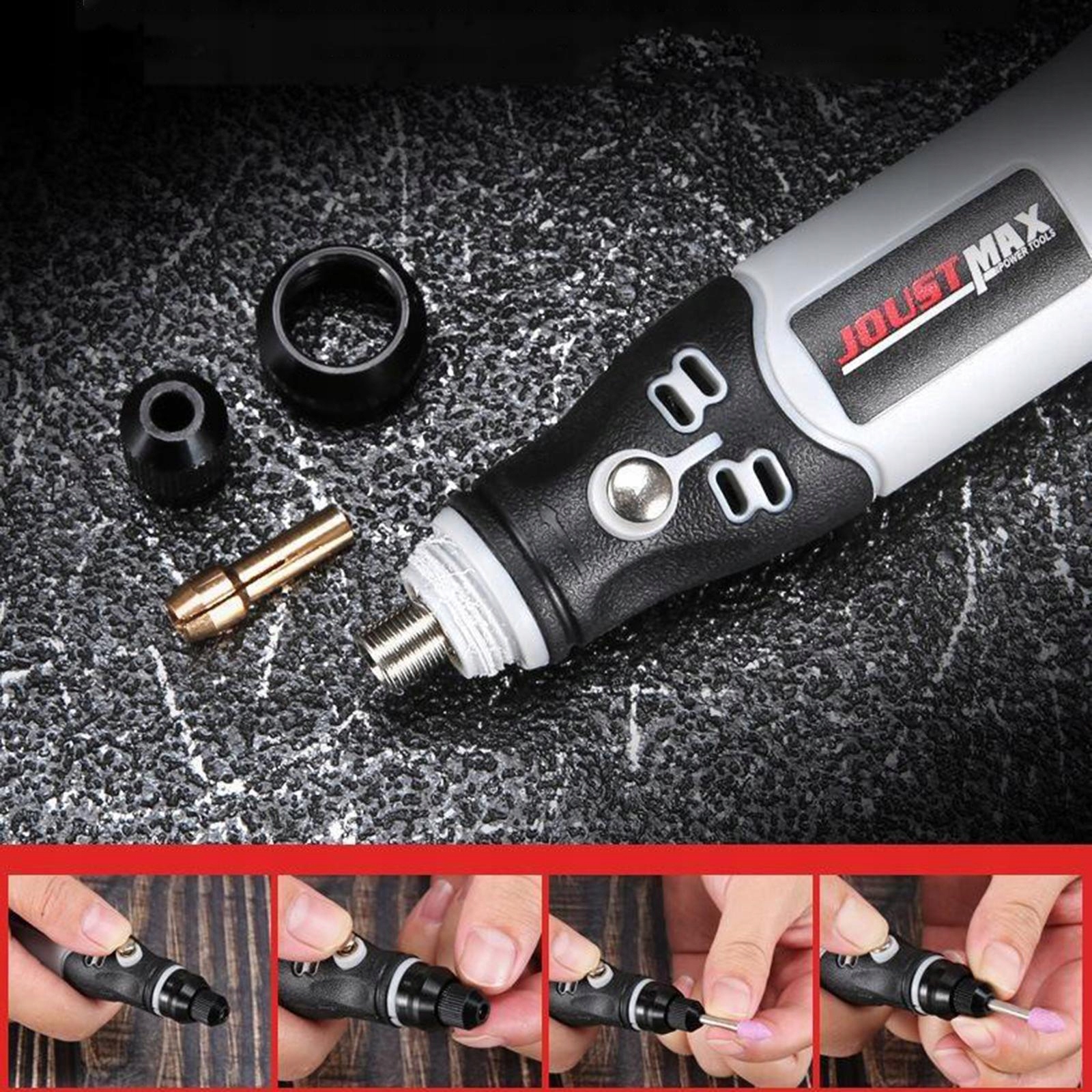 3 скорости для поиска проектов: 5000 об/мин, 10000 об/мин, 15000 об/мин, больше скоростей для полировки, очистки, гравировки, обслуживания клапанов или легких конструкций корпуса
