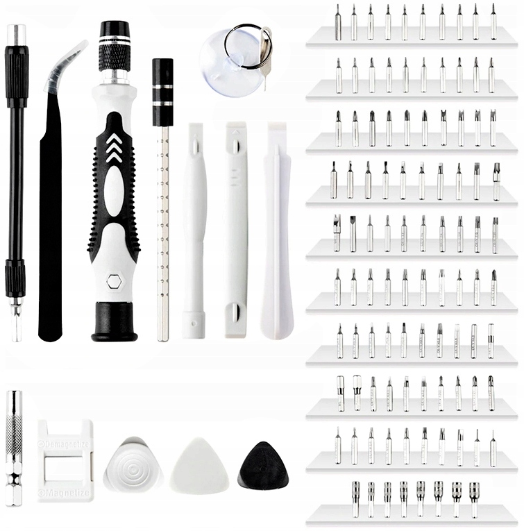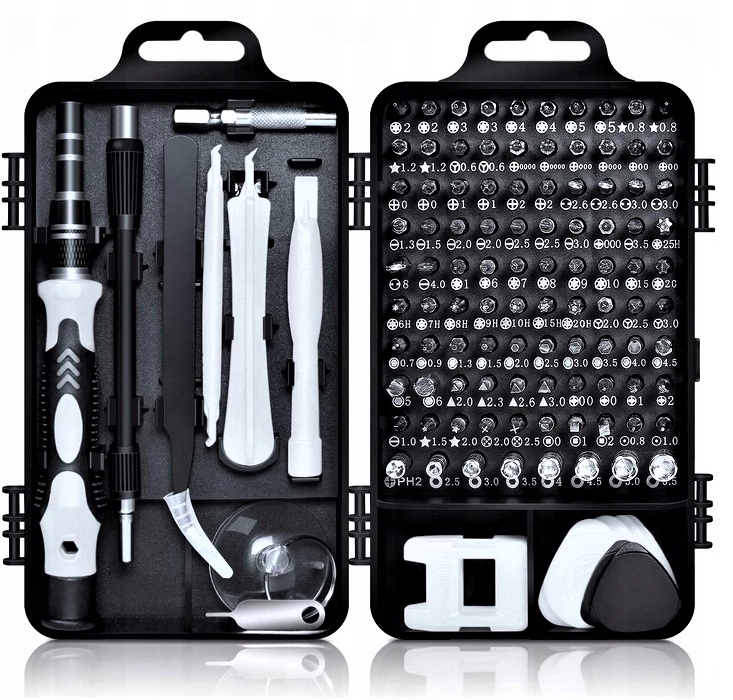 Обширный набор прецизионных инструментов - целых 115 элементов, 98 отверток и множество других инструментов для профессионального ремонта. Набор отверток для обслуживания планшетов, ноутбуков, игровых приставок и многих других предметов. Коллекция отверток упакована в удобный футляр для удобного хранения и транспортировки. Сменные биты различных размеров и форм, которые можно закрепить на универсальном держателе, сэкономят место в мастерской и в вашем ящике для инструментов. Инструменты, изготовленные из прочной хромованадиевой стали, устойчивы к коррозии, поэтому прослужат вам долгие годы использования.