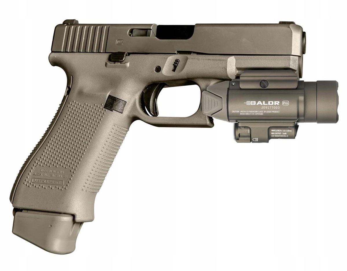 фонарик с лазерным прицелом для оружия. Все это питается от двух батарей CR123A, что благодаря эффективному диоду нейтрального белого цвета и оптике PMMA TIR (линза/коллиматор) обеспечивает световой поток на уровне 1350 люмен и дальность действия до 260 м. зеленый лазерс мощностью 5 МВт облегчает быстрое наведение цели без необходимости рвать лук-мушку.модель BALDR Pro оснащена монтажной рейкой, совместимой со стандартом 22 мм (weaver/picatinny / MIL-STD-1913). Система стальных зажимов позволяет быстро прикрепить фонарик к оружию.