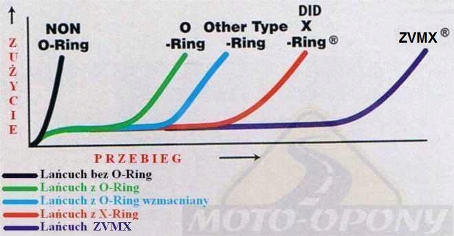 о цепи - приводные цепи DiD с символом ZVM-X-это новейшая и самая мощная цепь из линейки DiD. Производители мотоциклов постоянно повышают мощность своих машин. Чтобы удовлетворить максимальные требования к трансмиссии, DiD также улучшает свои цепи. Самая мощная цепь ZVM2, доступная уже очень давно, была усилена и, таким образом, является самой мощной цепью на рынке. Цепь ZVM-X размером 525 имеет сопротивление растяжению на невероятном уровне 46 000 Н ( цепь ZVM2 имела значение 40 000 Н ). Повышение прочности происходило только за счет более высокого веса цепи по сравнению с предшественником. Сто звеньев цепи 525 ZVM-X весили около 2,11 кг, где сто звеньев предшественника ZVM2 весили около 1,82 кг. Цепи ZVM-X также повысили износостойкость по сравнению со своим предшественником. Эта цепь не имеет себе равных !!!