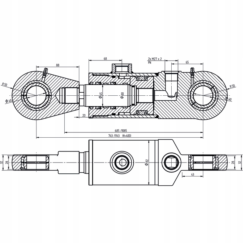 диаметр штока поршня: 45 мм