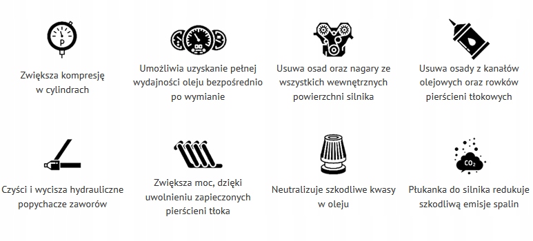 если в двигателе возникают такие проблемы, как вязкие кольца, неравномерное сжатие, повышенный расход масла или черный дым, работа с препаратом должна длиться около 25-30 мин перед заменой масла.