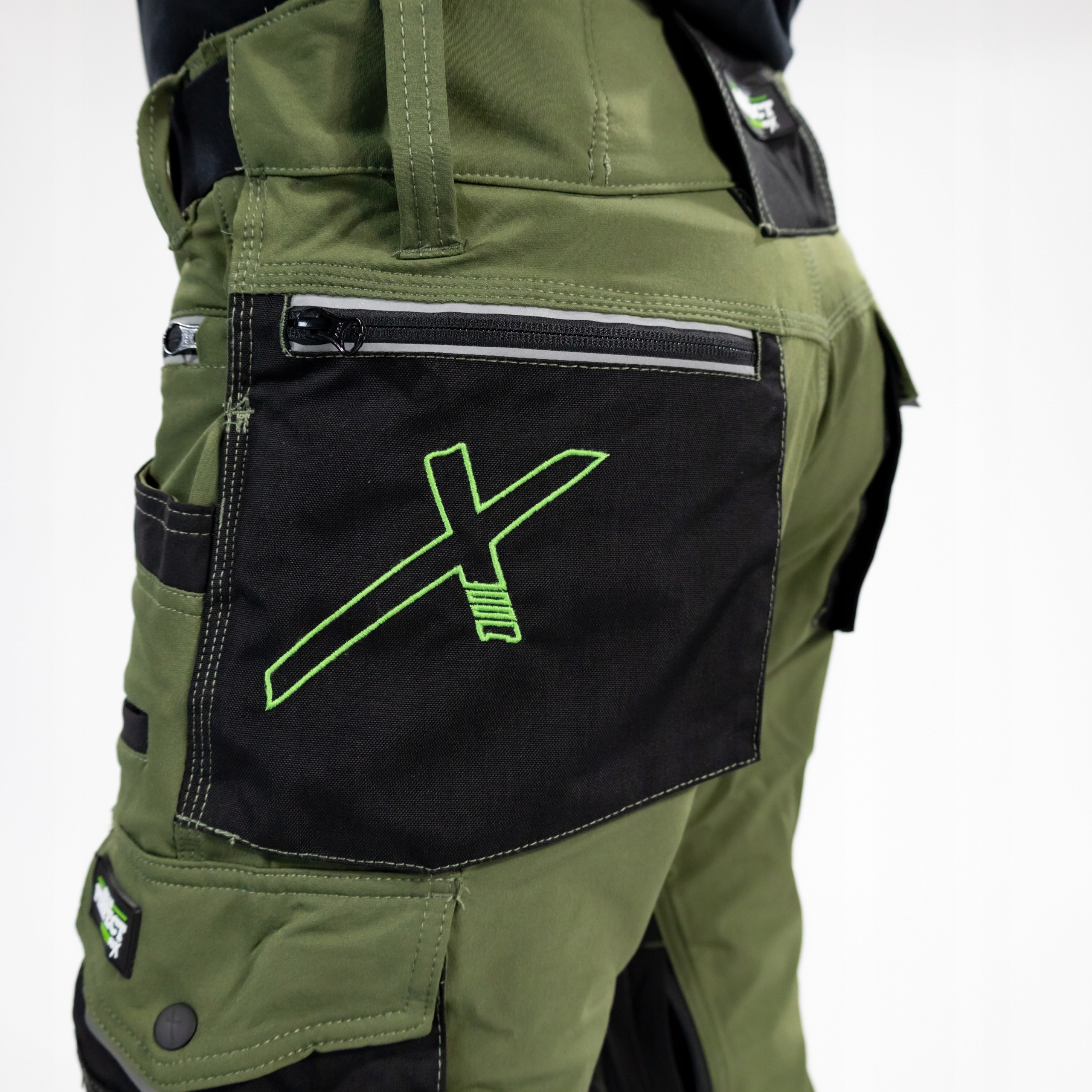 - многочисленные карманы; передние и задние в поясе; боковые на штанине вмещают ручные инструменты; карманы для телефона или удостоверения личности; усиленные карманы на коленях позволяют вставлять поролоновые вставки