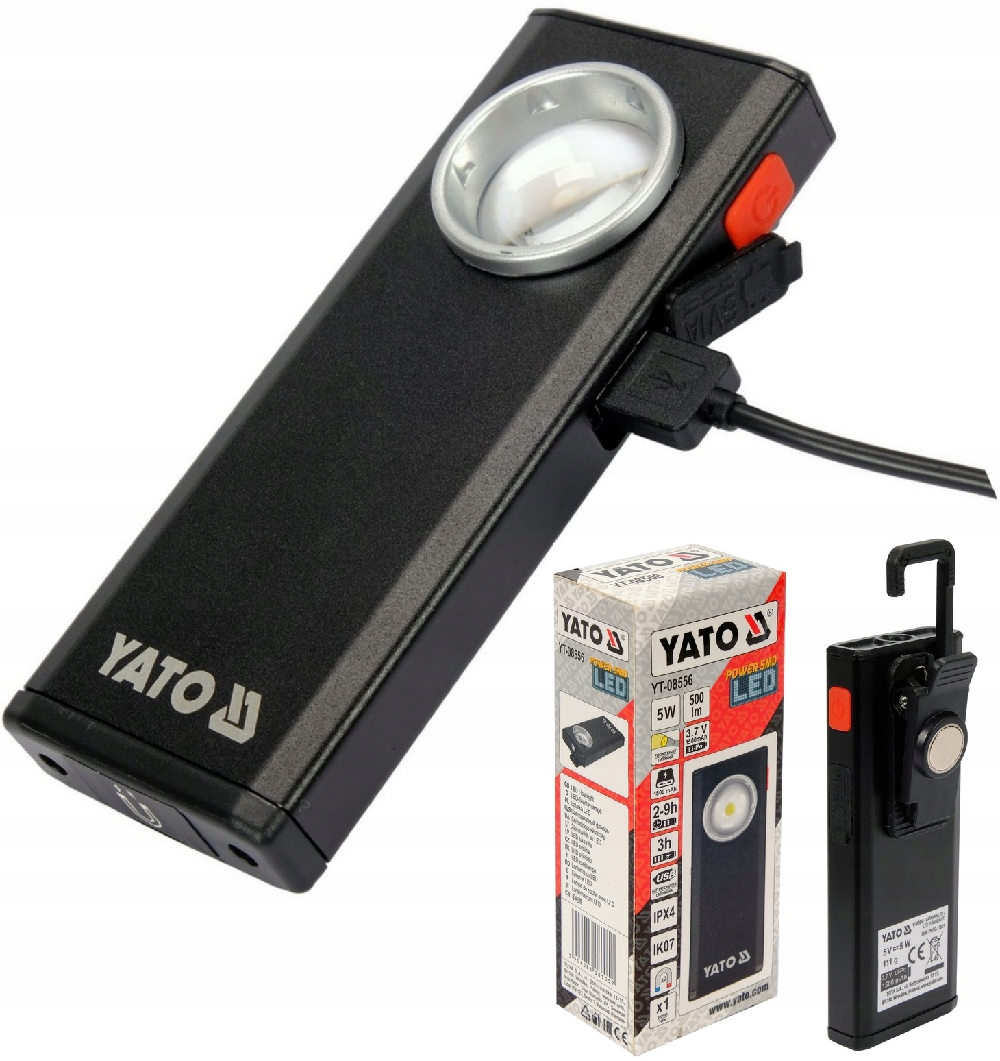 прочный алюминиевый фонарик YATO, оснащенный диодом Osram, который обеспечивает свет мощностью 500 лм и дальностью действия 55 м. три режима работы позволяют регулировать освещение в соответствии с вашими действиями и уровнем заряда батареи. Оснащенный литий-полимерным аккумулятором 3.7 V 1500mAh, он обеспечит до 9 часов работы и позволяет заряжать другие устройства-функция powerbank. Дополнительным преимуществом является возможность повесить фонарик по-разному-на магнит, зажим или крючок.