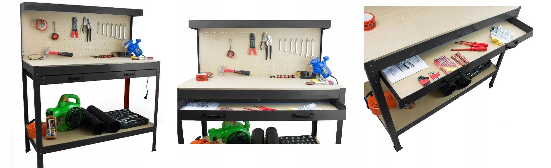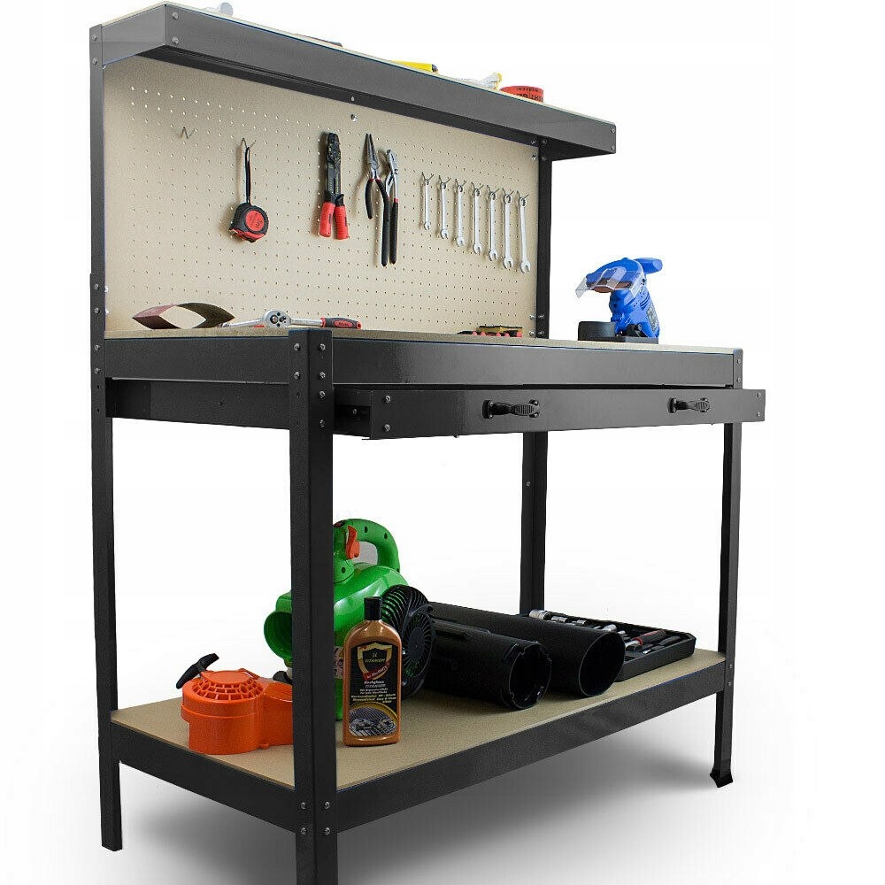 практичный, универсальный стол, безусловно, будет хорошим вариантом для любого мастера. Он оснащен ручками для инструментов и ящиком. Благодаря ему вы сможете легко поддерживать порядок в мастерской и значительно облегчать себе работу.п>
