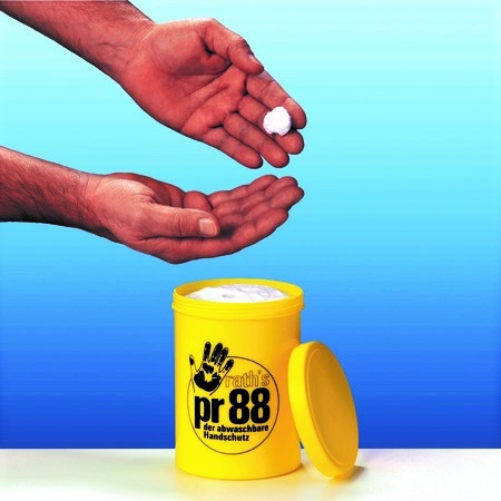 pr88 - это крем, защитный слой которого не допускает попадания грязи в кожу. pr88 растворяется при мытье водой, грязь смывается вместе с кремом.