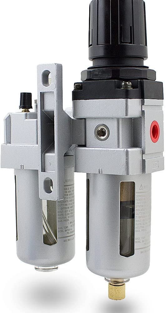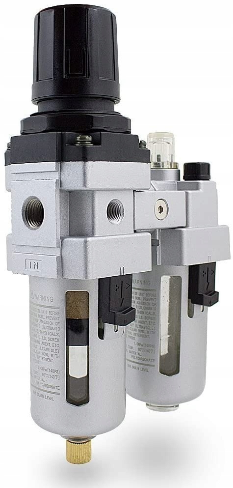 Предлагаемый товар представляет собой воздушный фильтр с манометром и переходником с резьбой 1/4" очень прочной конструкции. Имеет съемную подвеску для крепления на стену и фиксатор регулятора (вверх и вниз). является важным элементом пневматических установок 1/4 дюйма. Встроенный фильтр сушит и отделяет масло и другие примеси. Сливаем воду из бака, потянув за кран внизу фильтра. Используя фильтр, мы защищаем устройства от ржавчины и повреждений. Фильтр также необходим малярам.