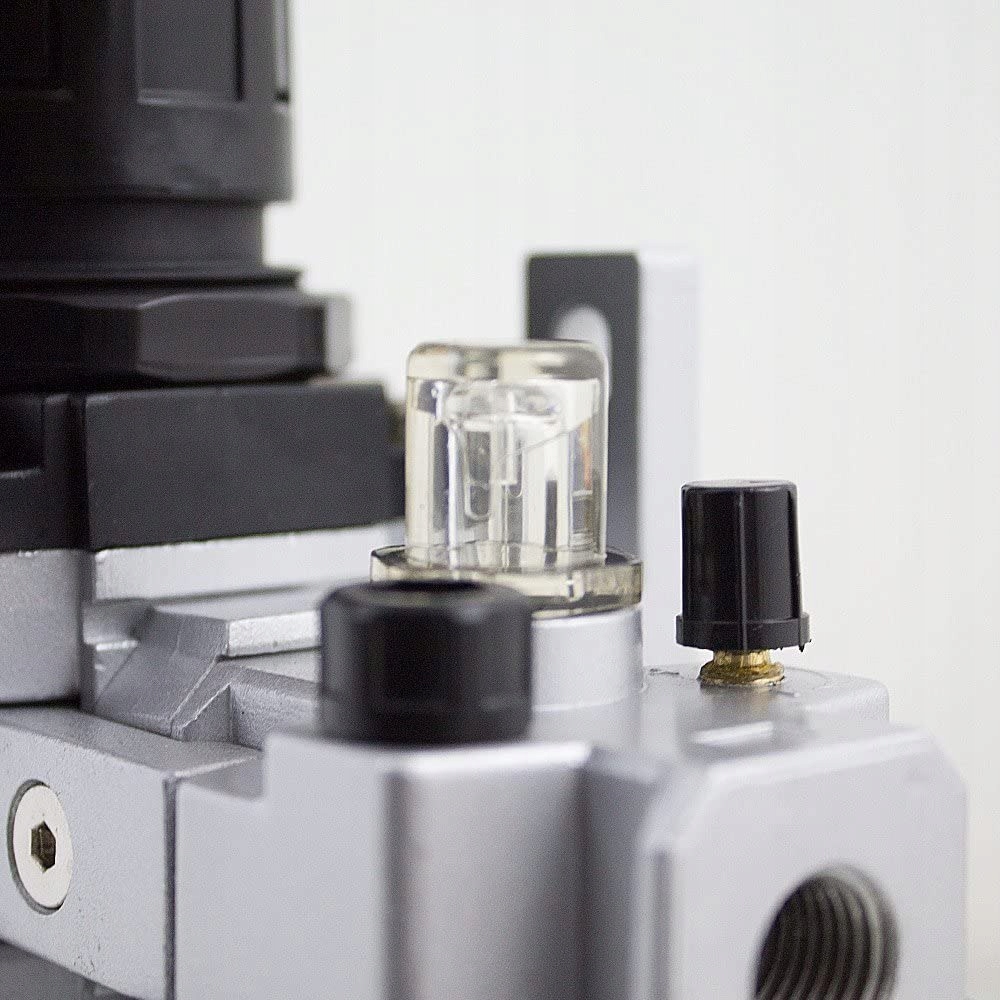 Предлагаемый продукт представляет собой воздушный фильтр с манометром и переходник с резьбой 1/4" с очень прочным строительство. Имеет съемную подвеску для крепления на стену и фиксатор регулятора (вверх и вниз). Это незаменимый элемент в пневматических установках диаметром 1/4 дюйма. Встроенный фильтр сушит и отделяет масло и другие примеси. Сливаем воду из бака, потянув за кран в нижней части фильтра. С помощью фильтра мы защищают устройства от ржавчины и повреждений. Фильтр также является обязательным элементом для маляров.