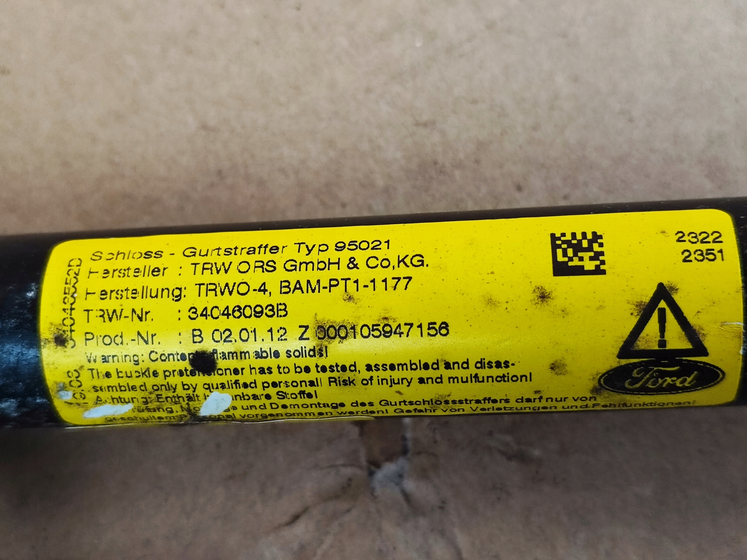 Ford Kuga MK1 2.0 TDCi LIFT 2011R, преднатяжители передних ремней, комплект с фото