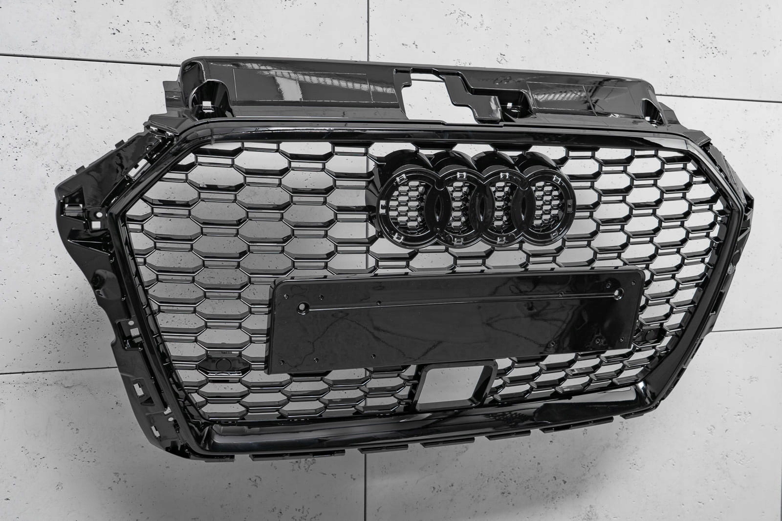 После установки решетка радиатора позволяет создать совершенно новый стиль «гражданского» AUDI a3, стилизуя его под спортивную версию RS3. В решетке имеются отверстия для парктроника PDC и место для активного круиз-контроля.