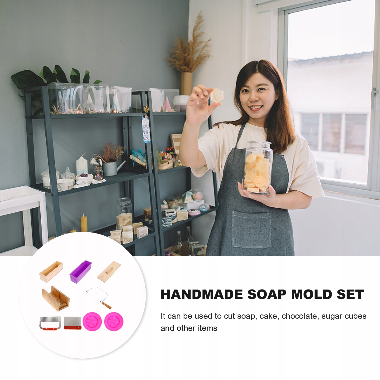 набор для резки. Он включает в себя форму для резки, форму для изготовления мыла и многое другое. Он изготовлен из дерева, металла и силикона