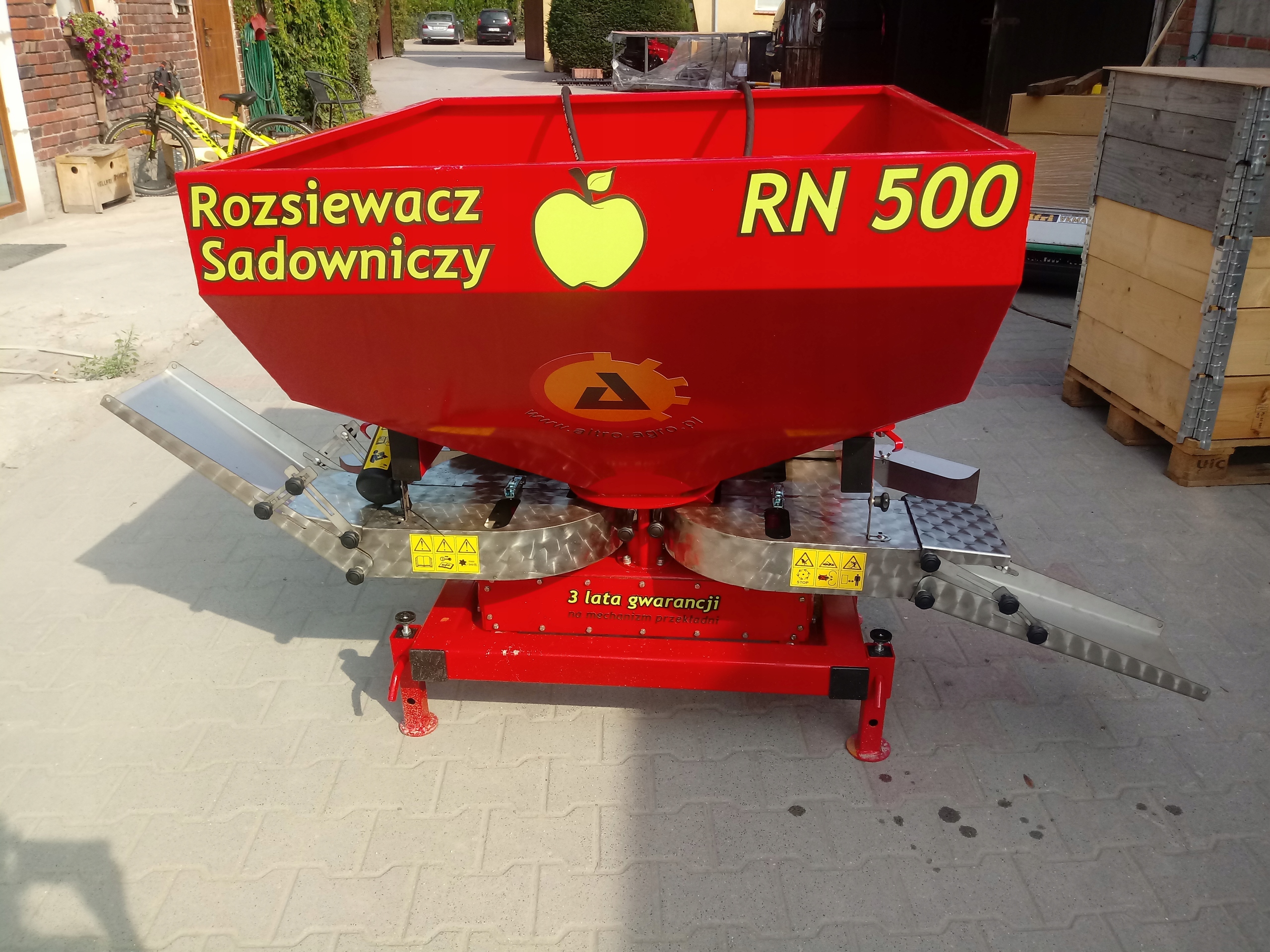 разбрасыватель RN / 500SAD используется для ленточного разбрасывания сыпучих удобрений. Машина работает подключенной под прямо трактора и приводится в движение от вала вом трактора. Привод передается через цельный приводной механизм, заключенный в стальной корпус. Все компоненты трансмиссии разработаны и изготовлены на нашем заводе. Зубчатые шестерни редуктора термообработаны. Мы производим посевные элементы из нержавеющей стали. Бункер может быть изготовлен из стальной пластины, после обработки, окрашен порошковым покрытием или может быть из нержавеющей стали. Разбрасыватель имеет градуированные задвижки с ручным управлением, которые гидравлически закрываются. Приспособление для ленточного посева полностью изготовлено из нержавеющей стали. Открытие насадки для технического обслуживания (мойка) не требует инструментов. Разбрасыватели имеют возможность полевых работ, после демонтажа Садовой Насадки и установки длинных лопастей. Разбрасыватели RN / 500 / SAD всегда оснащены двумя приводами, независимо закрывающими задвижки бункера.п>