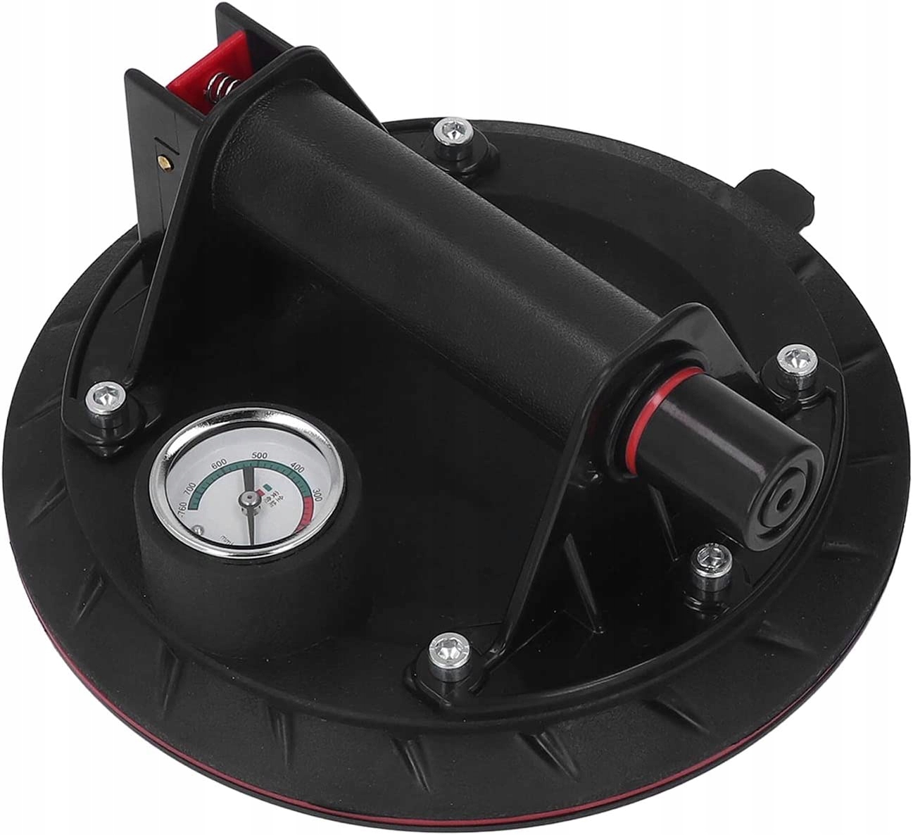 ручка-вакуумная присоска для стекол с маноментром, предназначенная для перемещения различных элементов с гладкой поверхностью. Цилиндр насосной системы изготовлен из прочного алюминия, покрытого удобным силиконовым пластиком для надежного и надежного захвата при перемещении.