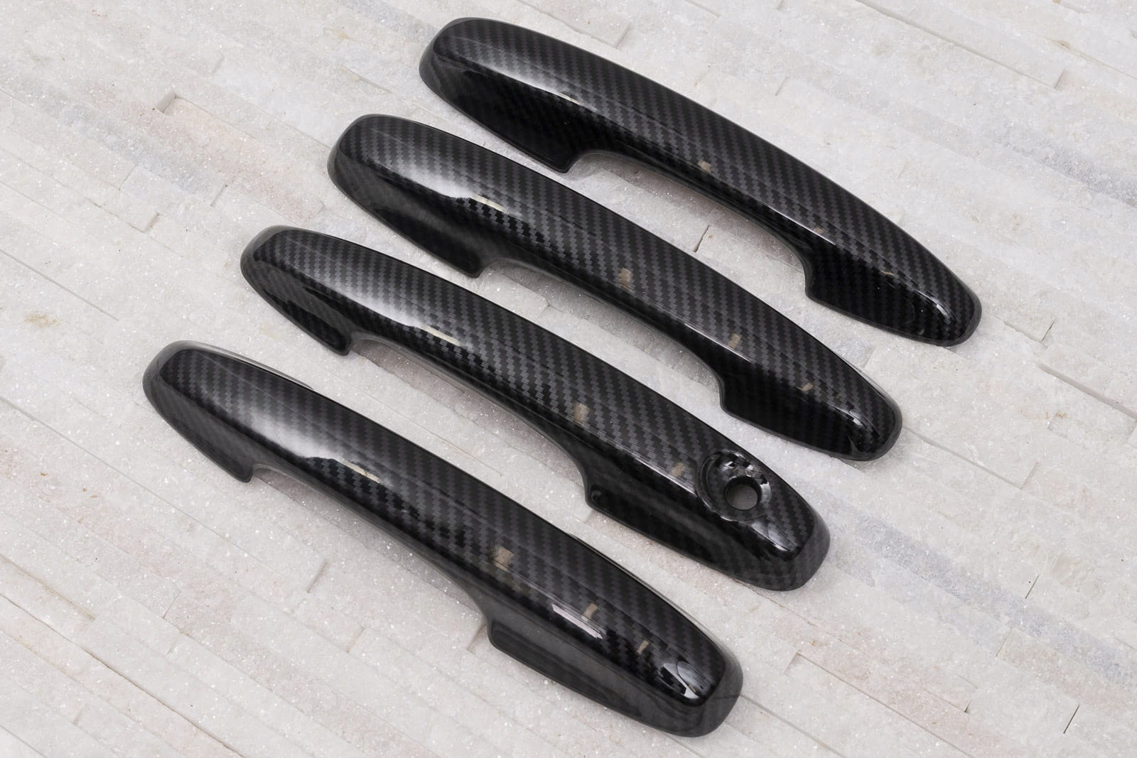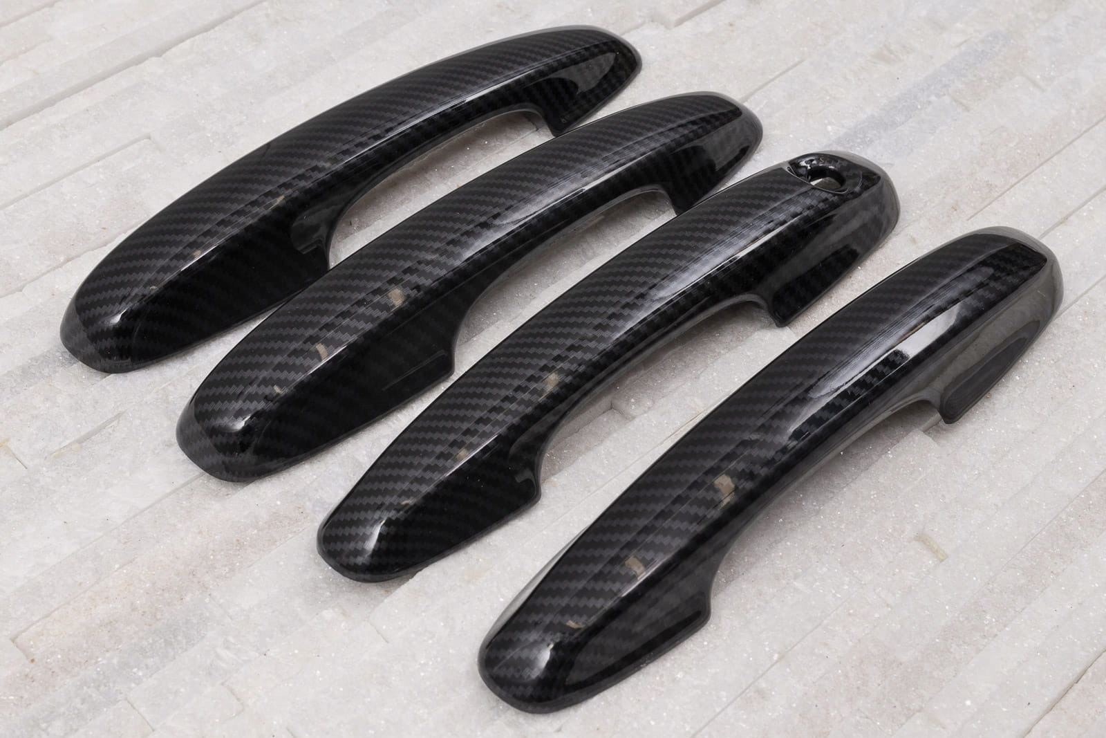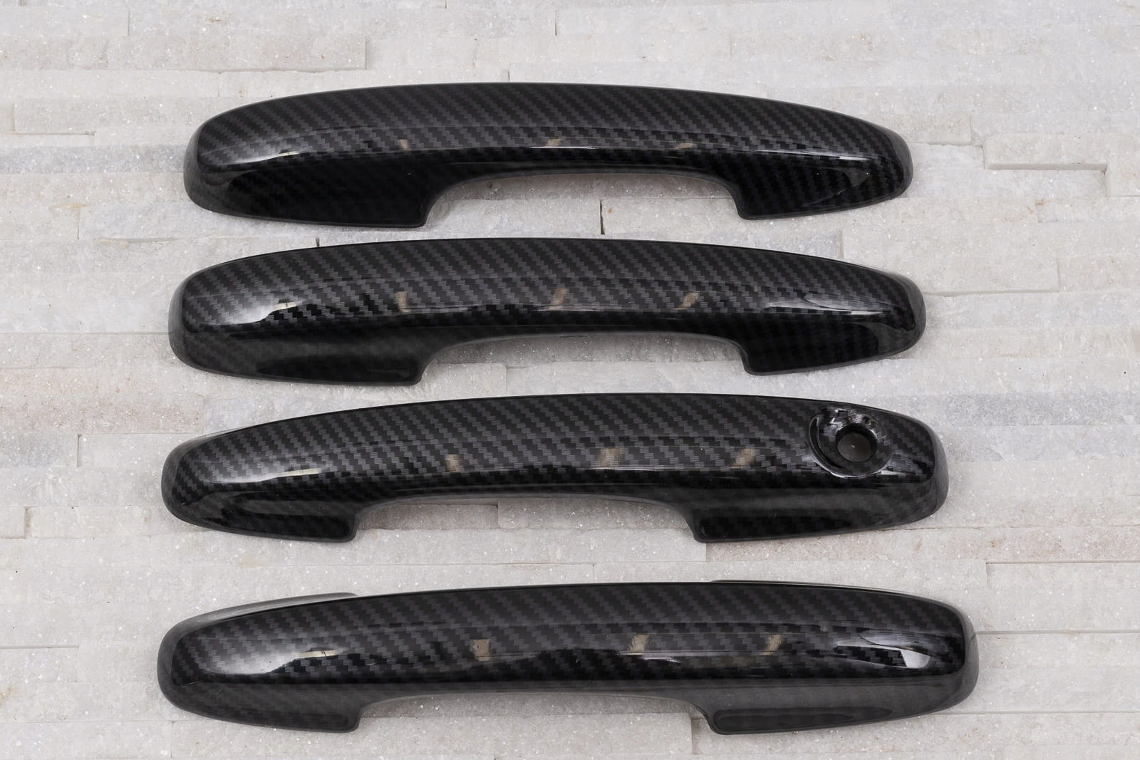 в комплект входит набор из четырех накладок на дверные ручки. Они монтируются с помощью скотча 3М двухсторонней клейкой ленты, прикрепленной к внутренней стороне элементов. Их наносят на обезжиренную поверхность при помощи экстрактивного бензина или спирта, при положительных температурах от 18 ° С. Рекомендуется профессиональная установка. п>