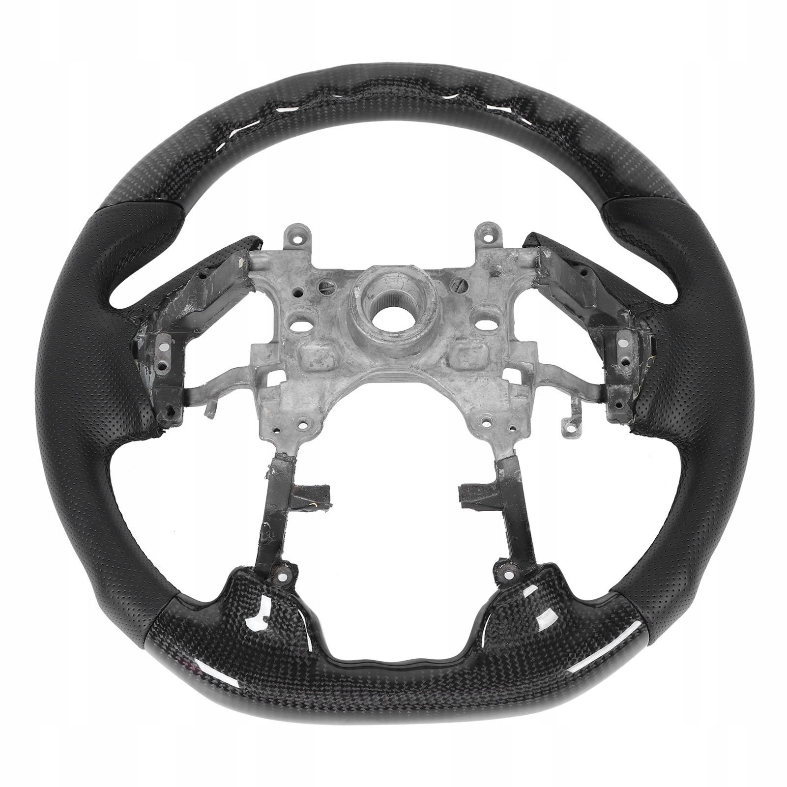 1. Тщательно отобранный материал из углеродного волокна, поэтому он имеет гладкую и четкую текстуру. Конструкция Racing D-типа, плоское дно, накладки на ладони из кожи наппа, черная строчка, выступы для пальцев. Подходит для Хонды Аккорд 2013-2017 гг.