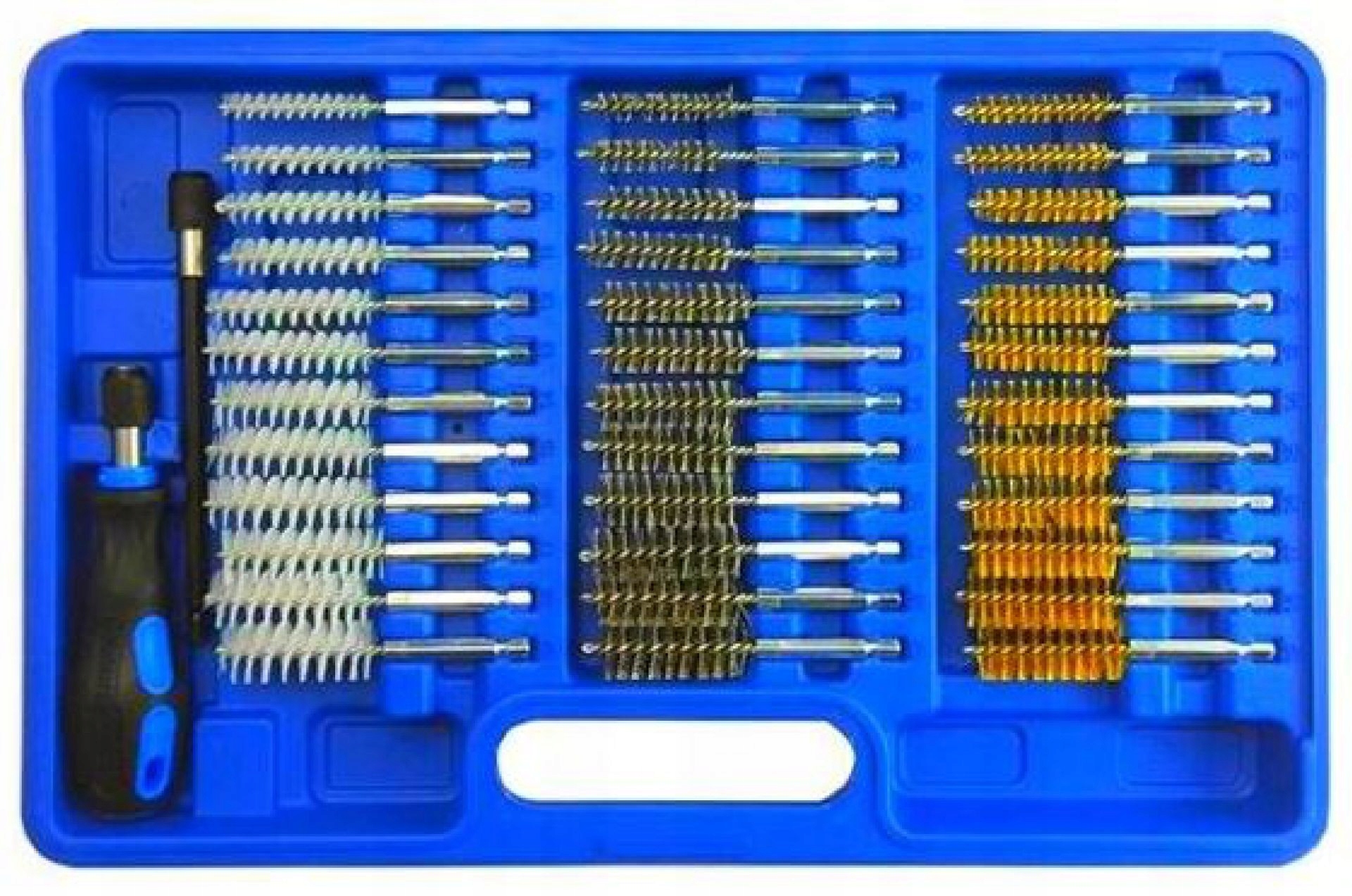 в комплекте есть удлинитель и ручка. 38 чистящих щеток различной твердости.