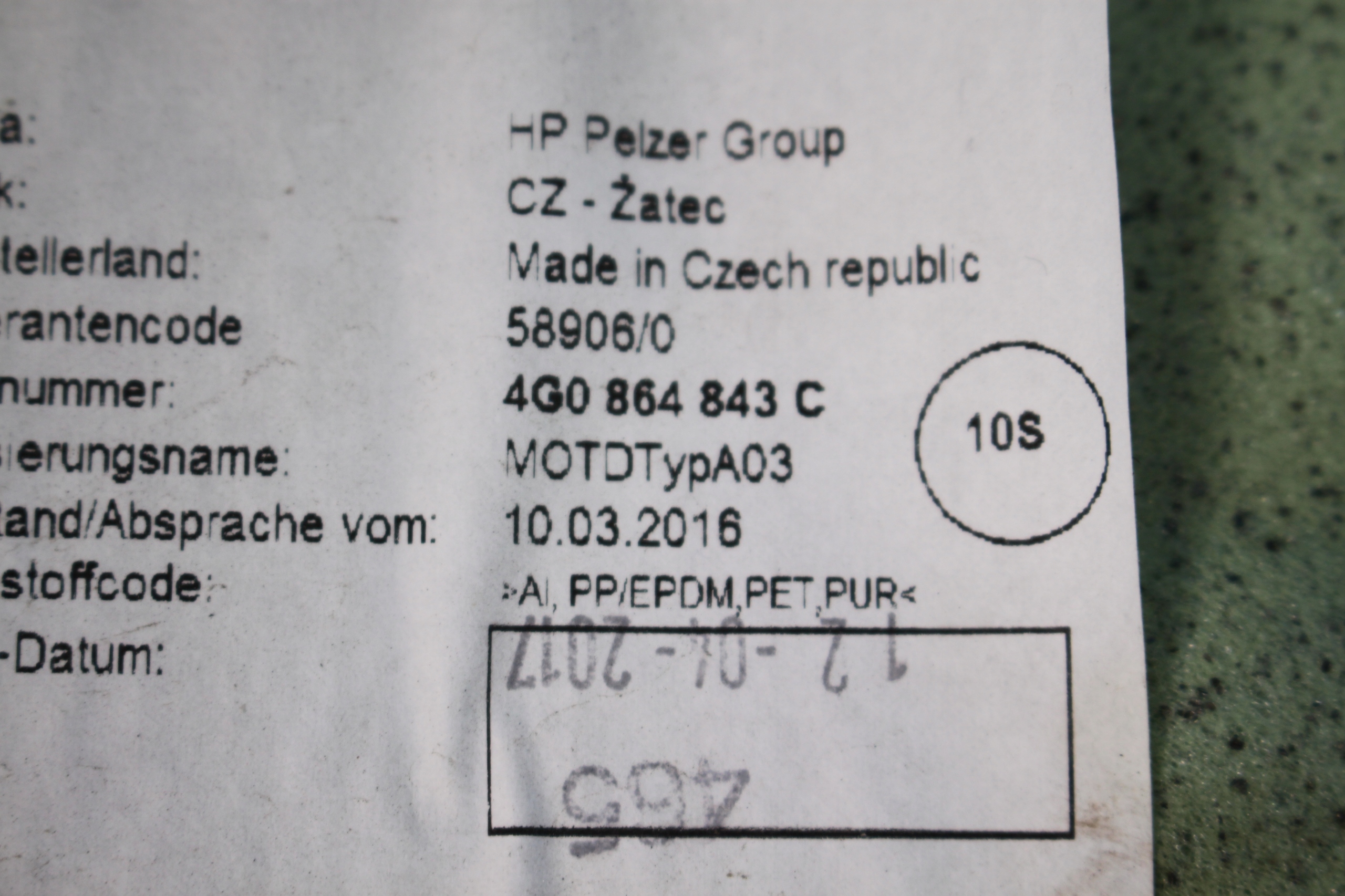 | Номер детали | 4G0864843C |