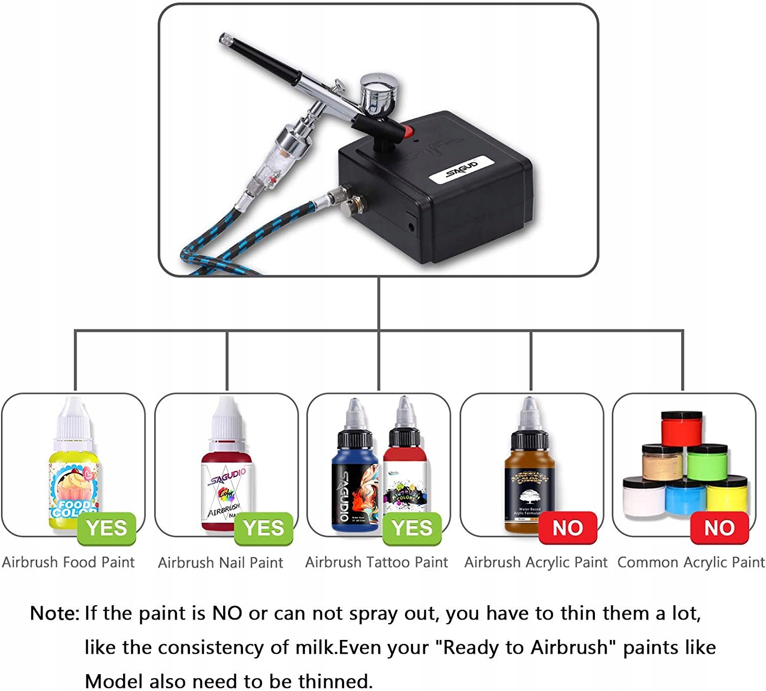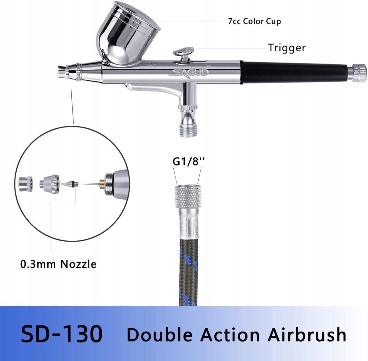 Набор аэрографов SAGUD с мини-компрессором аэрографа Кисть с двойной гравитацией для украшения тортов, хобби, поделок, татуировок, ногтей, макияжа с набором для чистки аэрографа