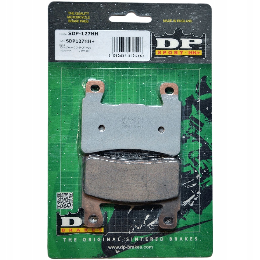колодки DP изготовлены из металлических порошков (дляпоглощения тепла ), огнеупорных материалов (для обеспечения трения ), модификаторов трения (для обеспечения надлежащего „ощущения тормоза”), графитовых добавок (для минимизации износа тормозного диска и устранения шума), смешанных вместе, сформированных и затем спеченных при высокой температуре и давлении. Произведено в Великобритании.