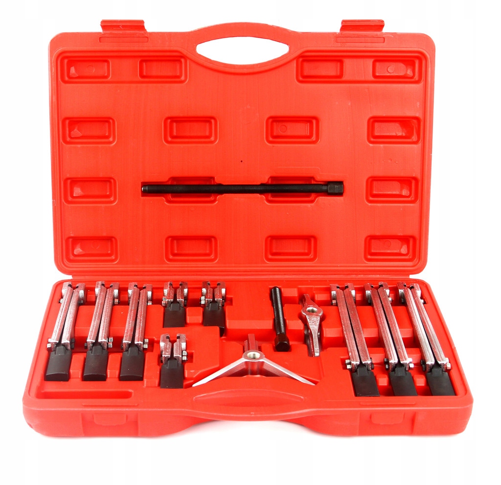 комплект применяется для снятия подшипников, зубчатых колес, шкивов, валов и других заклинивающих деталей, используемых в механике. Комплект предназначен для интенсивной работы в механических и автомобильных сервисах.