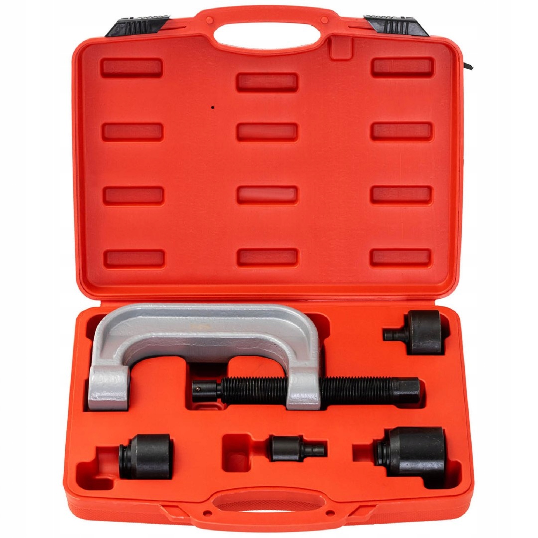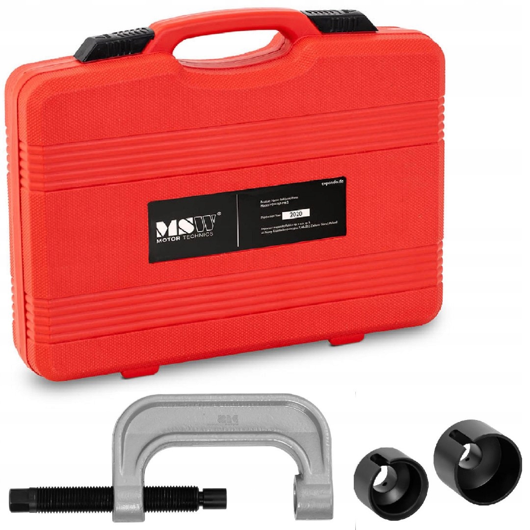 съемник шаровых шарниров MSW легковых автомобилейMercedes является аксессуаром для профессионального использования в мастерских механики, автосервисах, гаражах и т. д. Практичный комплект состоит из зажима ,болта 183 мм (шестигранный наконечник24 мм ),2 сжимающих головок 40 и 54 мм и прижимных элементов22, 33, 57 мм . Благодаря им вы мгновенно отделите шариковые штифты на моделях автомобилей марки Mercedes:W220 / W211 / W230.