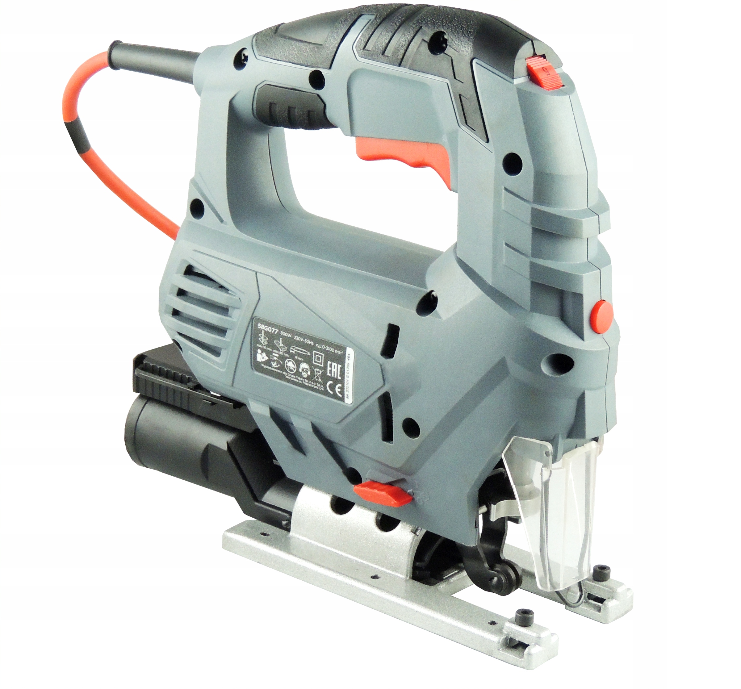 высокопроизводительный сетевой лобзик мощностью800 Вт , предназначенный для точной и быстрой резкидерева, металла ипластика с максимальной толщиной80 мм и 10 мм соответственно.