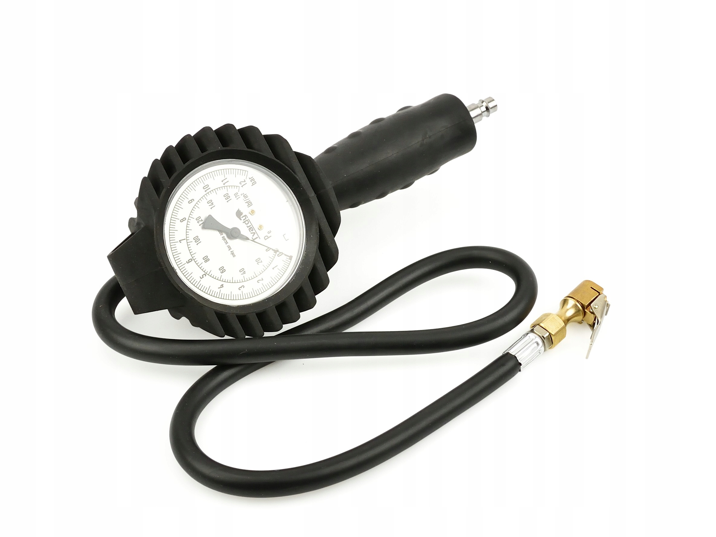профессиональный пневматический пистолет с большим манометром - для прокачки колес легковых и грузовых автомобилей. Оснащен гибким шлангом длиной 95 см и большим легко читаемым манометром диаметром 80 мм в резиновой оболочке для защиты от ударов и ударов. Измерительная шкала в двух единицах-Psi, бар. 1/4 " быстроразъемная муфта позволяет быстро подключаться к компрессору.п>