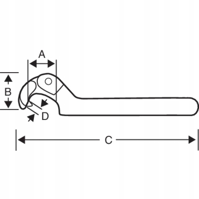 Ключ-крючок с круглым штифтом, шарнирный (регулируемый). Использование шарнира значительно расширяет сферу использования. Для обслуживания фланцев, колец и подшипников. Одиночная подвижная губка на штифте.