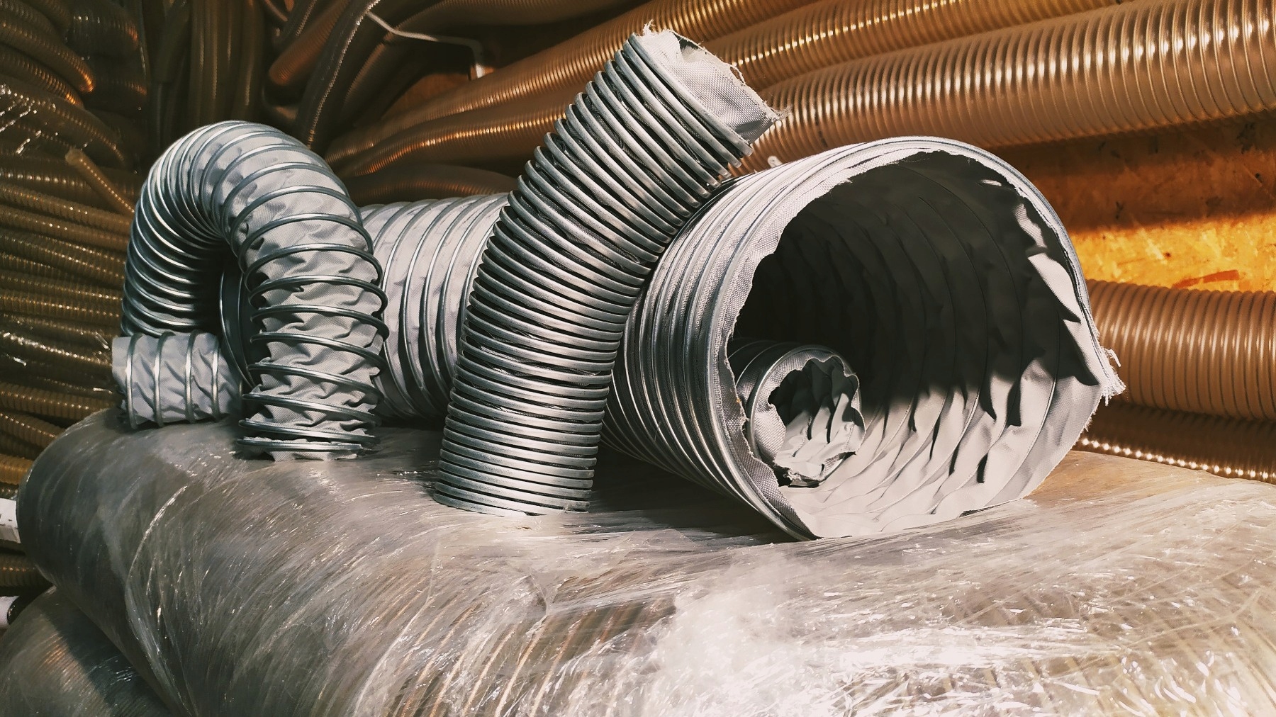 Шланг обдува выхлопных газов, устойчивый к разрывам и разрывам. Кабель вытяжной на основе стеклоткани, покрытой сантопреном, со спиралью из оцинкованной стали, виброустойчивый, для работы при температуре от -50оС до +120оС. Вентиляционный канал идеально гибок и сжимаем в осевом направлении, устойчив к выхлопным газам двигателя. Диапазон диаметров от 80 мм до 1000 мм. Статические заряды рассеиваются за счет заземления спирали.