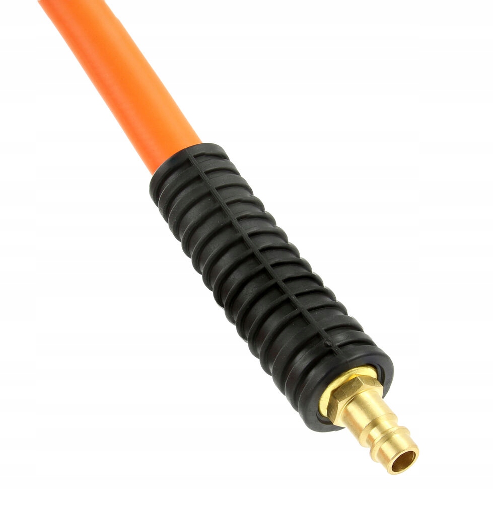 Шланг изготовлен из гибкой резины. Конструкция шланга армирована текстильной сеткой. Предотвращает скручивание и перекручивание. Наружный слой шланга устойчив к воздействию масла и УФ-излучения, дождю, морозу и т. д. Используется для передачи сжатого воздуха для питания различных типов пневматических инструментов. Он характеризуется очень высокой гибкостью и высокой пропускной способностью. Мало кто обращает внимание на пропускную способность при покупке шланга, а это очень важный параметр, существенно влияющий на работу инструментов, особенно ударных гайковертов, шлифовальных машин, пескоструйных аппаратов и т. д. Пропускная способность зависит от давления и внутреннего диаметра шланга, чем больше внутренний диаметр, тем выше эффективность использования воздуха.