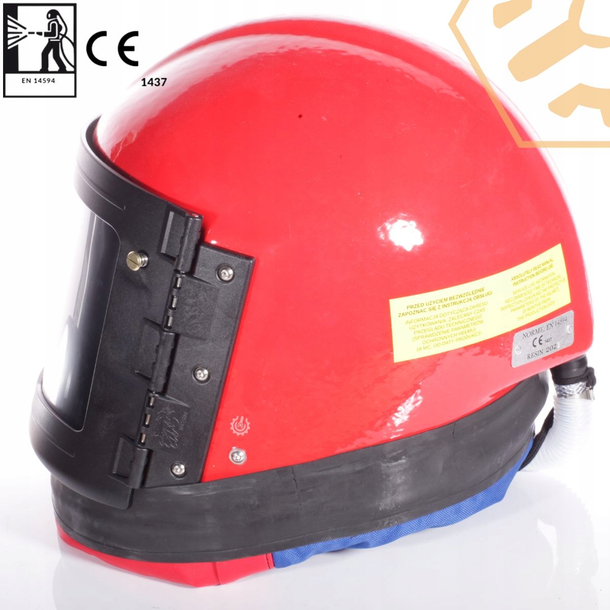 Каски защищают пользователя от опасностей, связанных с абразивно-струйной очисткой. Он соответствует следующим правилам и гармонизированным стандартам:
