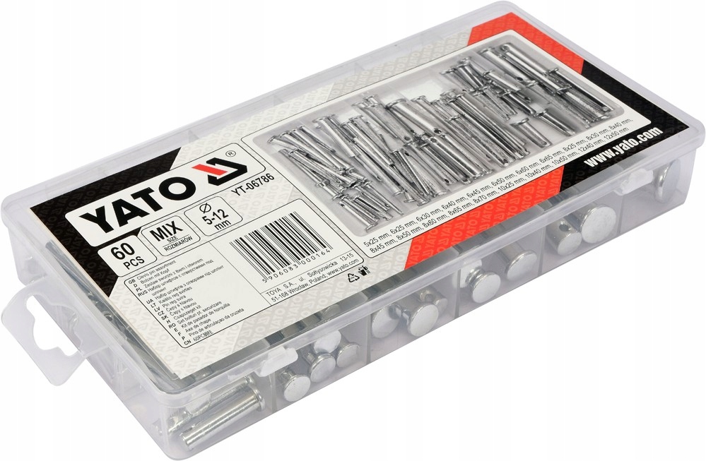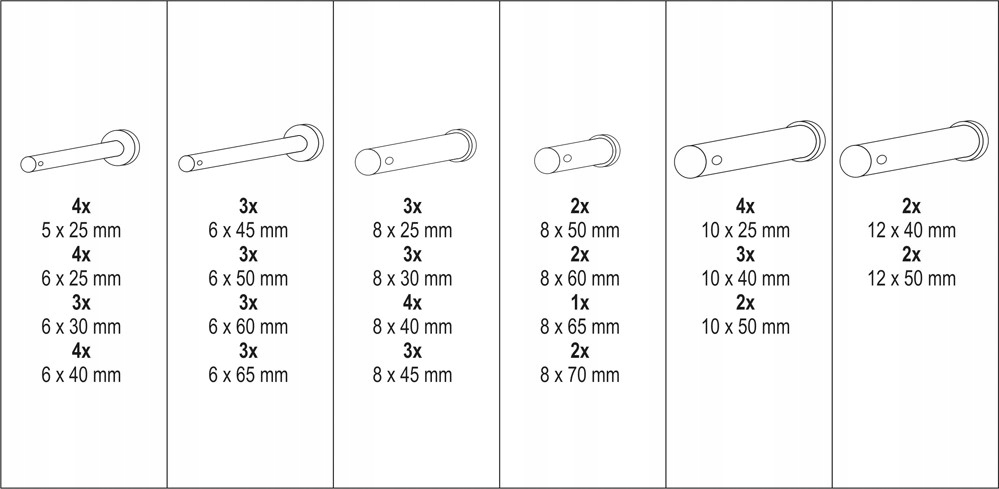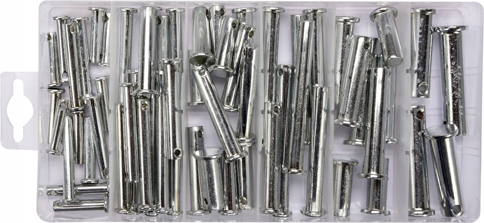 Набор из 60 штук штифтов с головкой и отверстием. В комплект входят размеры от 5x25 мм до 12x50 мм. Все это помещалось в удобную упаковку типа "сортировщик".п>