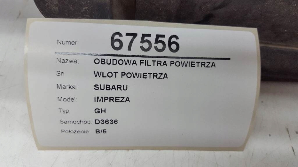 описание: воздухозаборник, разобранный с SUBARU IMPOREZA GH 2009, GTOW для монтаж