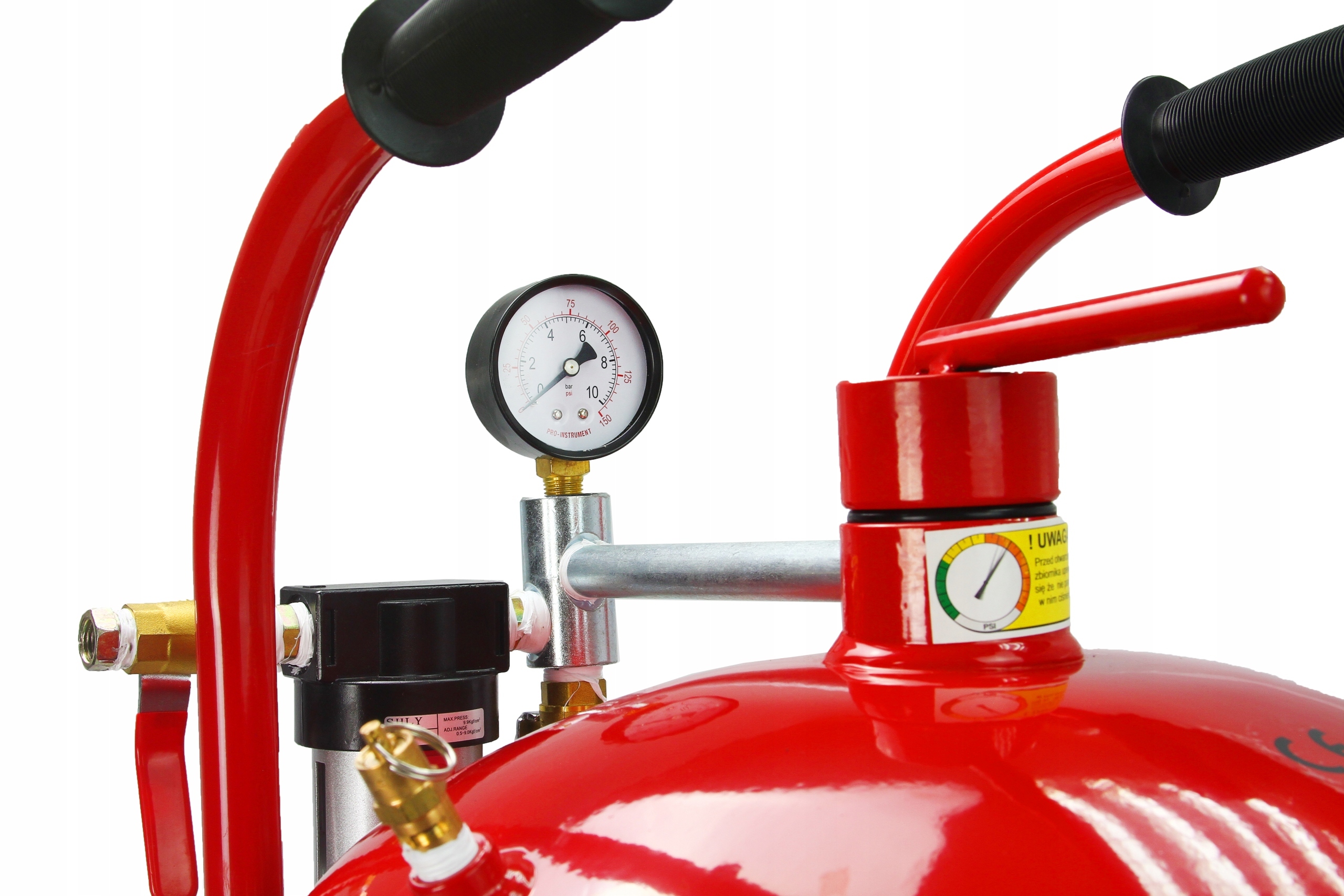 Входная труба пескоструйного аппарата заканчивается манометром с пароотделителем и функцией регулирования рабочего давления воздуха