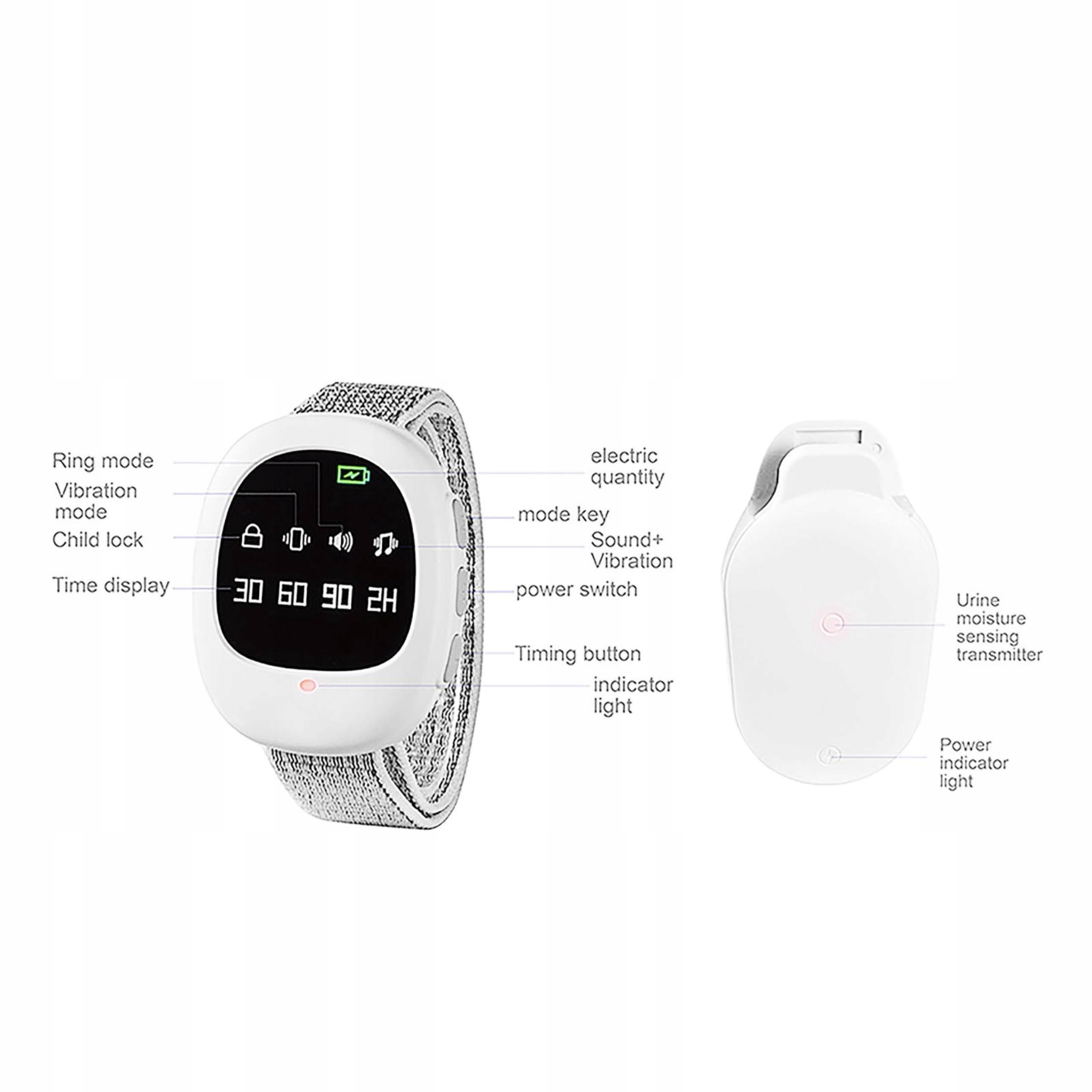 1. 3 режима: будильник с ночным недержанием мочи с 3 видами режима напоминания, будильником, вибрацией и мигающим светом, вы можете настроить режим в соответствии с различными потребностями.