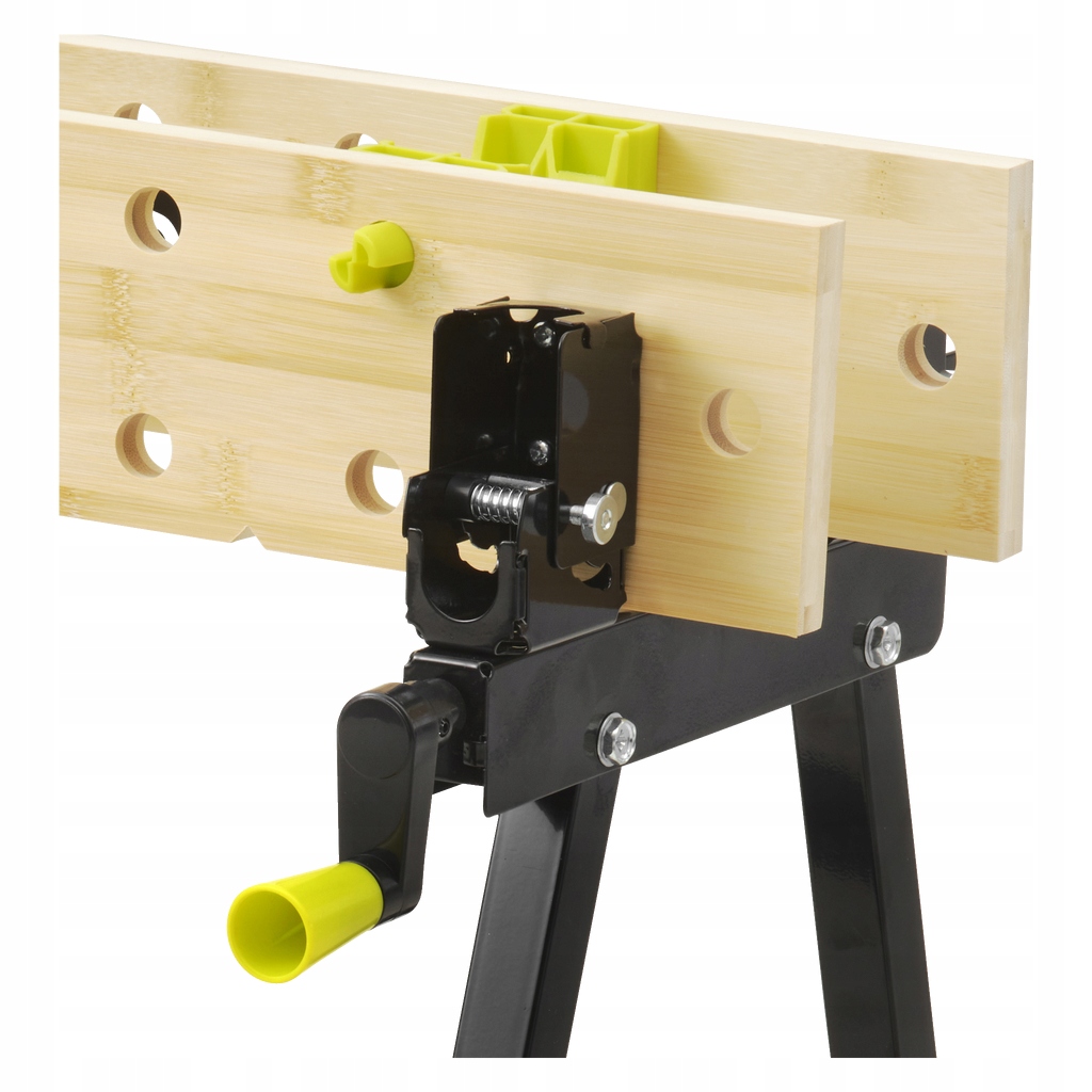 две столешницы из бамбукового дерева можно регулировать в диапазоне 0-90° для вертикального крепления заготовки. В положении, напоминающем букву Y, вы можете использовать его как практичный козел для распиловки, а в вертикальном положении, например, для удержания двери. Размеры каждой столешницы составляют д 60,5 х Ш 12 Х в. 1,6 см.