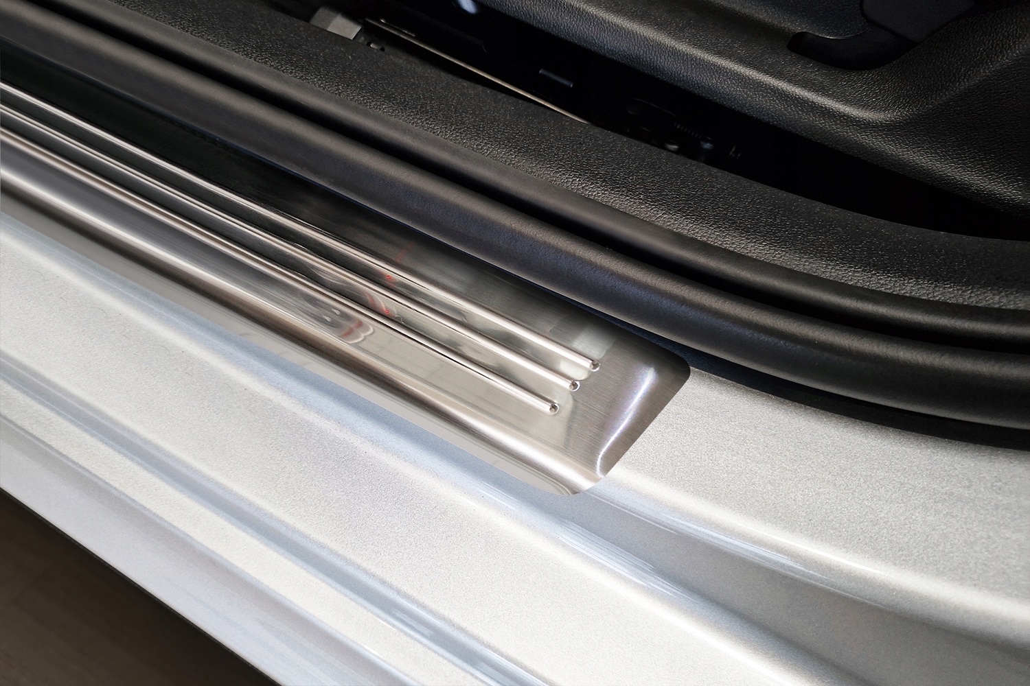 Пороговые планки изготовлены из кислотостойкой нержавеющей стали высочайшего качества, устойчивой к сложным погодным и дорожным условиям (соль, песок, влага).