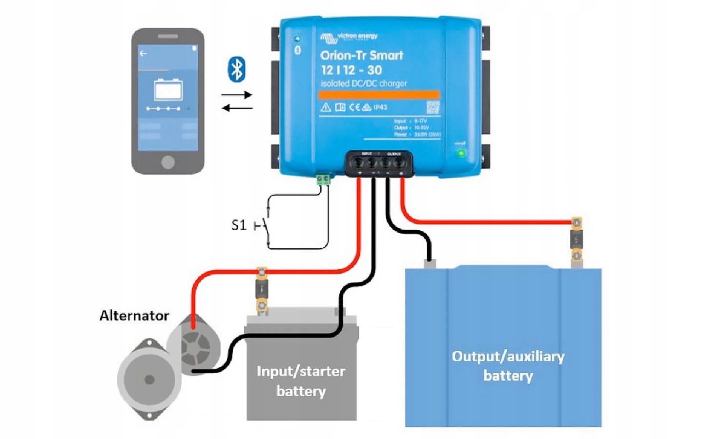 предназначен для использования в двойных аккумуляторных системах в транспортных средствах или лодках, где основная батарея заряжается от генератора переменного тока и стартера. Устройство можно контролировать и программировать через Bluetooth с помощью приложения Victron Connect, им можно управлять с помощью удаленного включения/выключения, и он оснащен механизмом обнаружения работы двигателя.