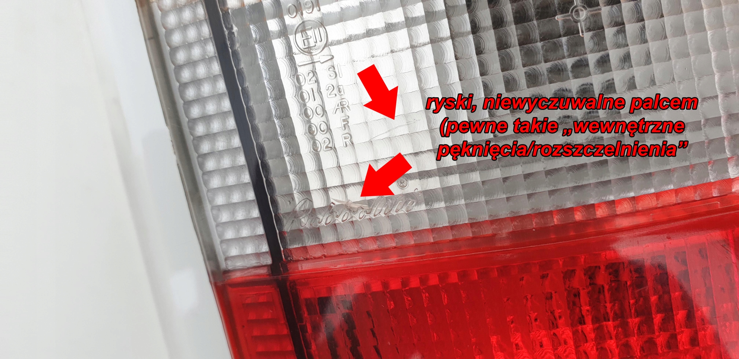 Визуально нормально. Полоска хорошая, к сожалению не знаю кода краски - кажется серебристый металлик. Абажур целый, повреждений и трещин не заметил, но есть два мелких дефекта: на светлой/прозрачной части абажура две царапины - пальцем не пощупаешь, они есть. под прямым углом видно, ты как будто написал "заделка"/"внутренняя трещина"? Не знаю как точно назвать, смотрите на фото, я отметил красными стрелками. Небольшой недочет, но я всегда стараюсь все показать педантично и честно. Кроме того, на абажуре, конечно, будут поверхностные царапины, ведь он не новый. Крепления целые, здесь все хорошо. В комплект также входит вставка-лампочка.