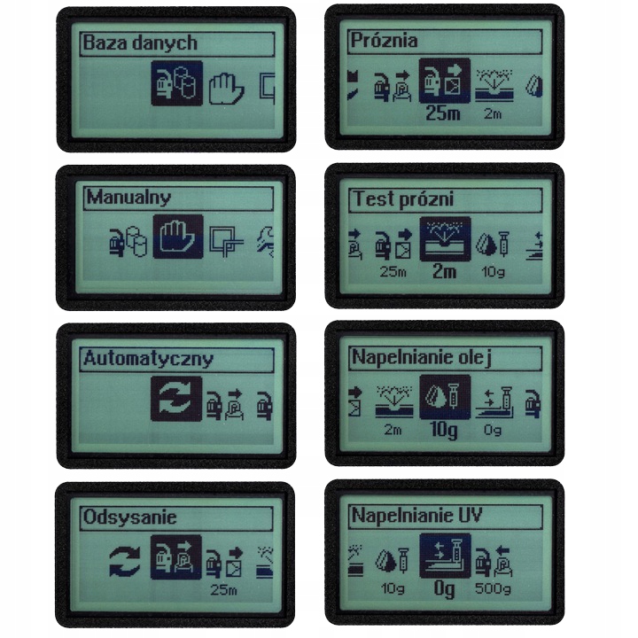 ручной режим-позволяет вводить все параметры, такие как время вакуума, количество масла и количество газа вручную, благодаря этому режиму каждый этап мы можем выполнить отдельно.