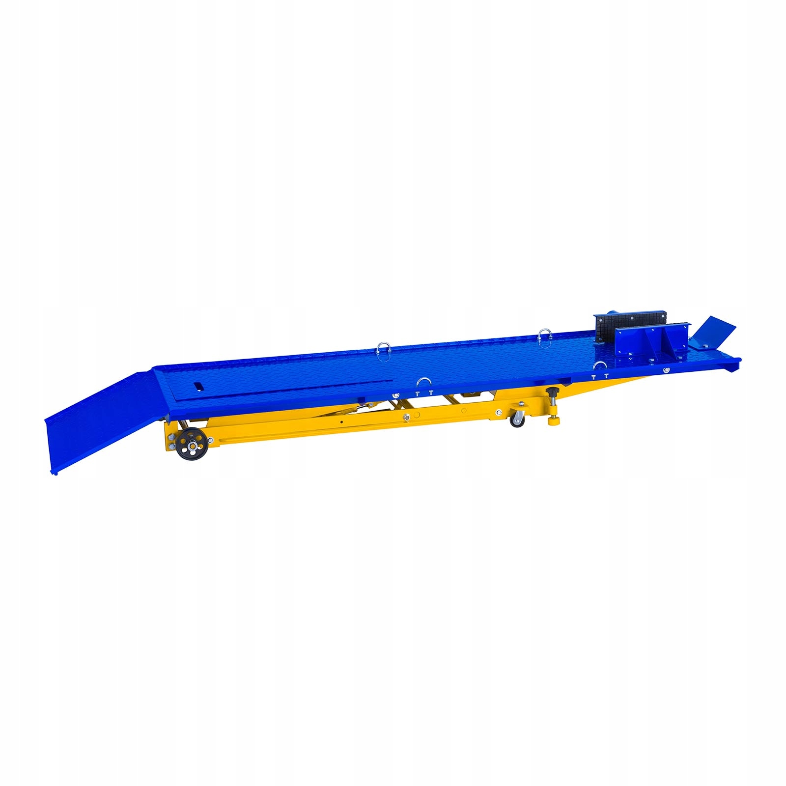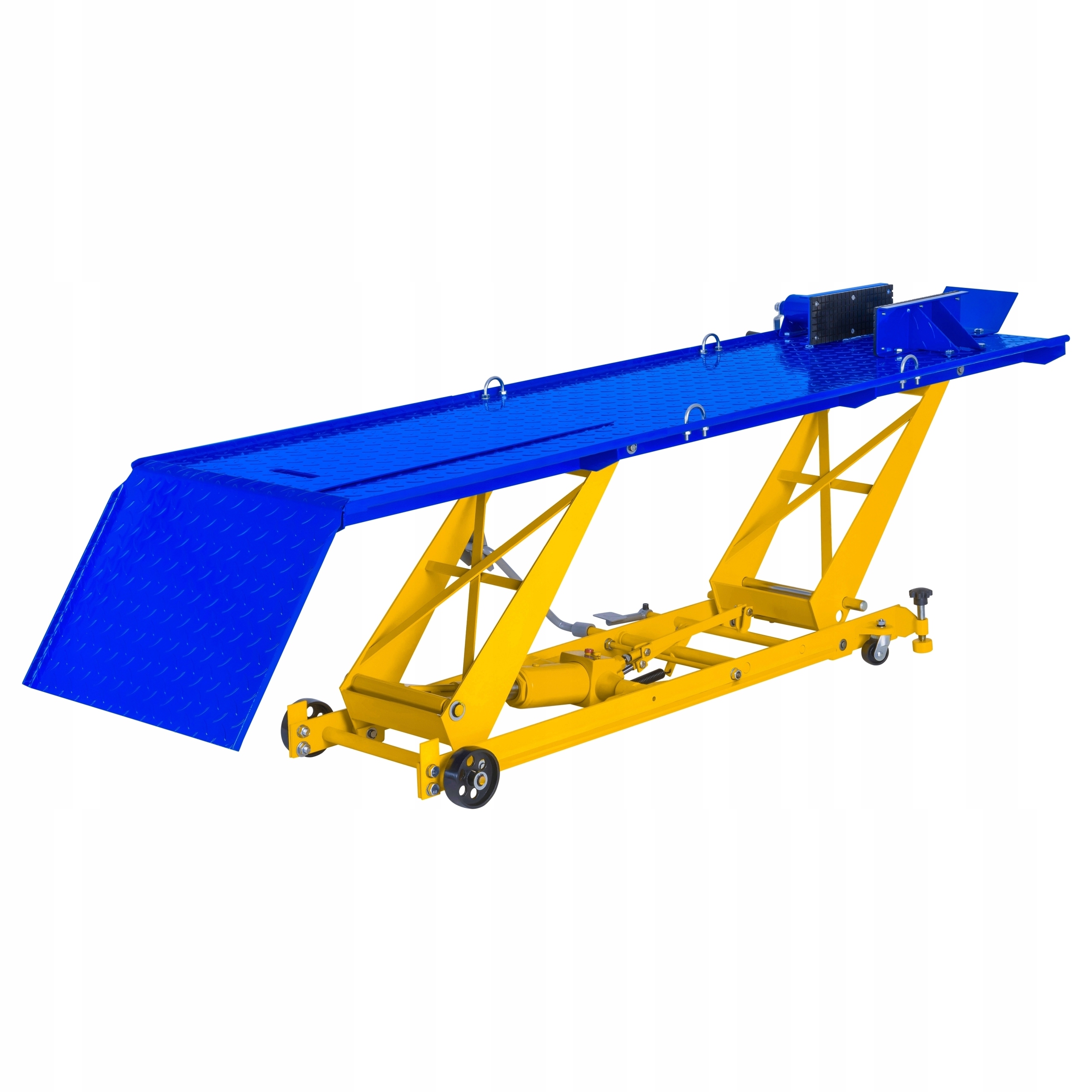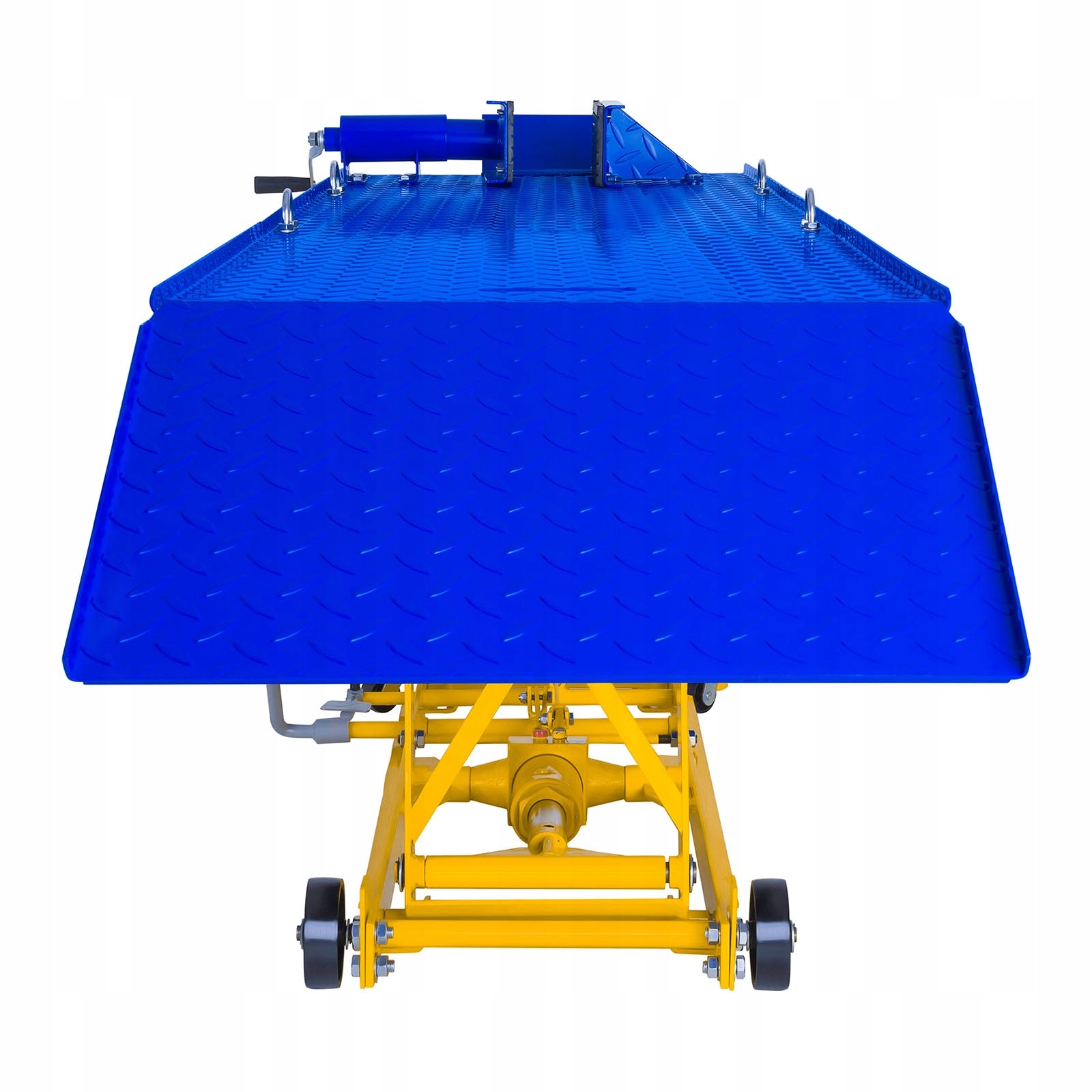мотоциклетный подъемник марки MSW предназначен для использования в профессиональных мотоциклетных сервисах, ремонтных мастерских и мастерских. Вы также найдете в гараже увлеченных двухколесных транспортных средств. Он предназначен для подъема (в диапазоне от 180 до 780 мм) и поддержки мотоциклов общей массой до 450 кг. Тиски для переднего колеса и 4 пряжки используются для иммобилизации ремонтируемого оборудования. Лифт MSW-MHB-450-780.3 имеет 4 колеса для обеспечения мобильности, опрокидывания и оснащен механизмом, благодаря которому опускание подъемника осуществляется плавно.п>