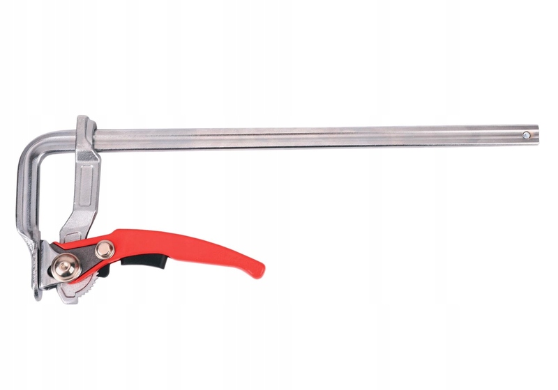 зажим столярный с цельнометаллической кованой конструкцией, быстрозажимной, использующий рычажный механизм, благодаря которому крепление происходит в несколько раз быстрее, чем при традиционном зажиме с резьбой. Шина фиксированного рычага и ступня являются одним элементом, что обеспечивает повышенную прочность и устойчивость к скручиванию. Профиль рельса обеспечивает равномерное распределение сил давления даже для тех частей поверхностей, которые находятся далеко от места расположения зажима. Все они изготовлены из прочной и устойчивой к деформации инструментальной стали.