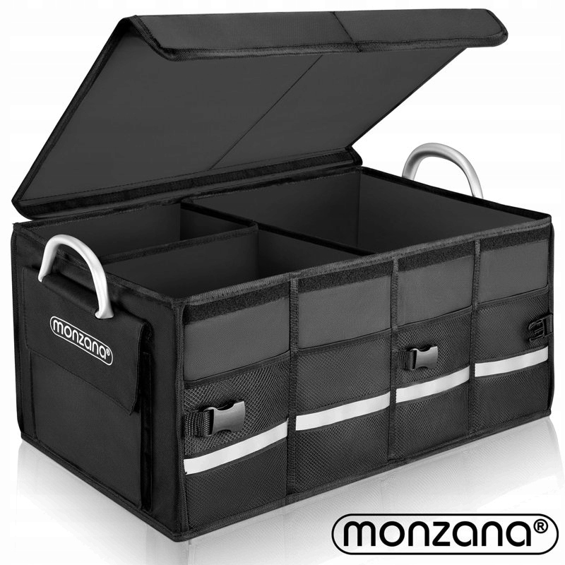 с емкостью 63 литра, она подходит для транспортировки и хранения покупок, напитков, спортивных товаров, инструментов или аварийного оборудования. Сумка может весить до 25 кг, легко моется и устойчива к истиранию. Благодаря съемной крышке и 3 съемным отсекам органайзер можно спроектировать и разделить по своему усмотрению. При необходимости ящик можно быстро уменьшить вдвое с помощью защелок или полностью сложить для экономии места. 4 сетчатых кармана снаружи и большой боковой карман предлагают дополнительное место для хранения мелочей. Крышка, перегородки и основание изготовлены из стабильного материала МДФ. Благодаря дополнительной прокладке на внутренних стенках содержимое оптимально защищено, и все остается на месте. Крышка также защищает содержимое от дождя и пыли. Автомобильную сумку легко транспортировать благодаря прочным алюминиевым ручкам. Сумка имеет светоотражающие полосы для большей безопасности при погрузке и разгрузке в темноте. Он также имеет три ремня на липучке для крепления в багажнике. Ящик имеет размеры 60 x 35 x 30 см и легко поместится в любой багажник. п>
