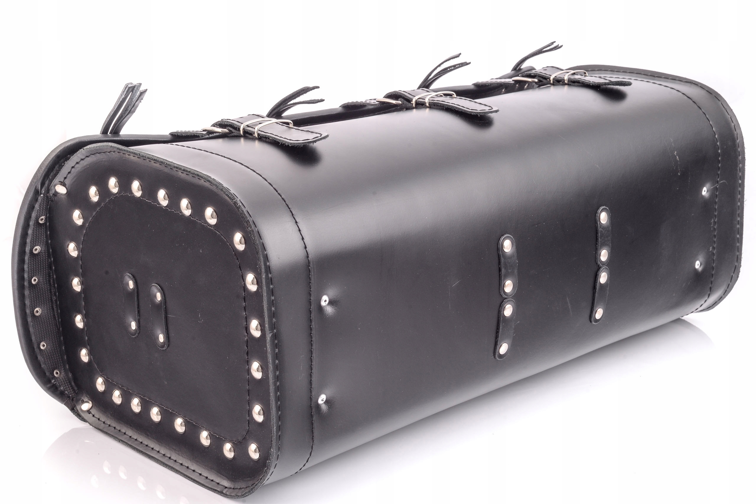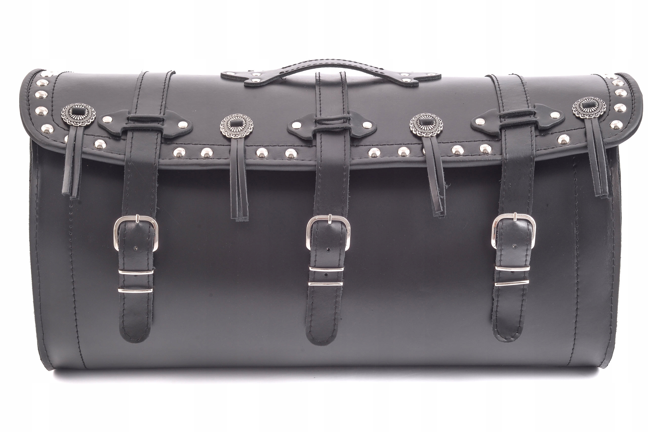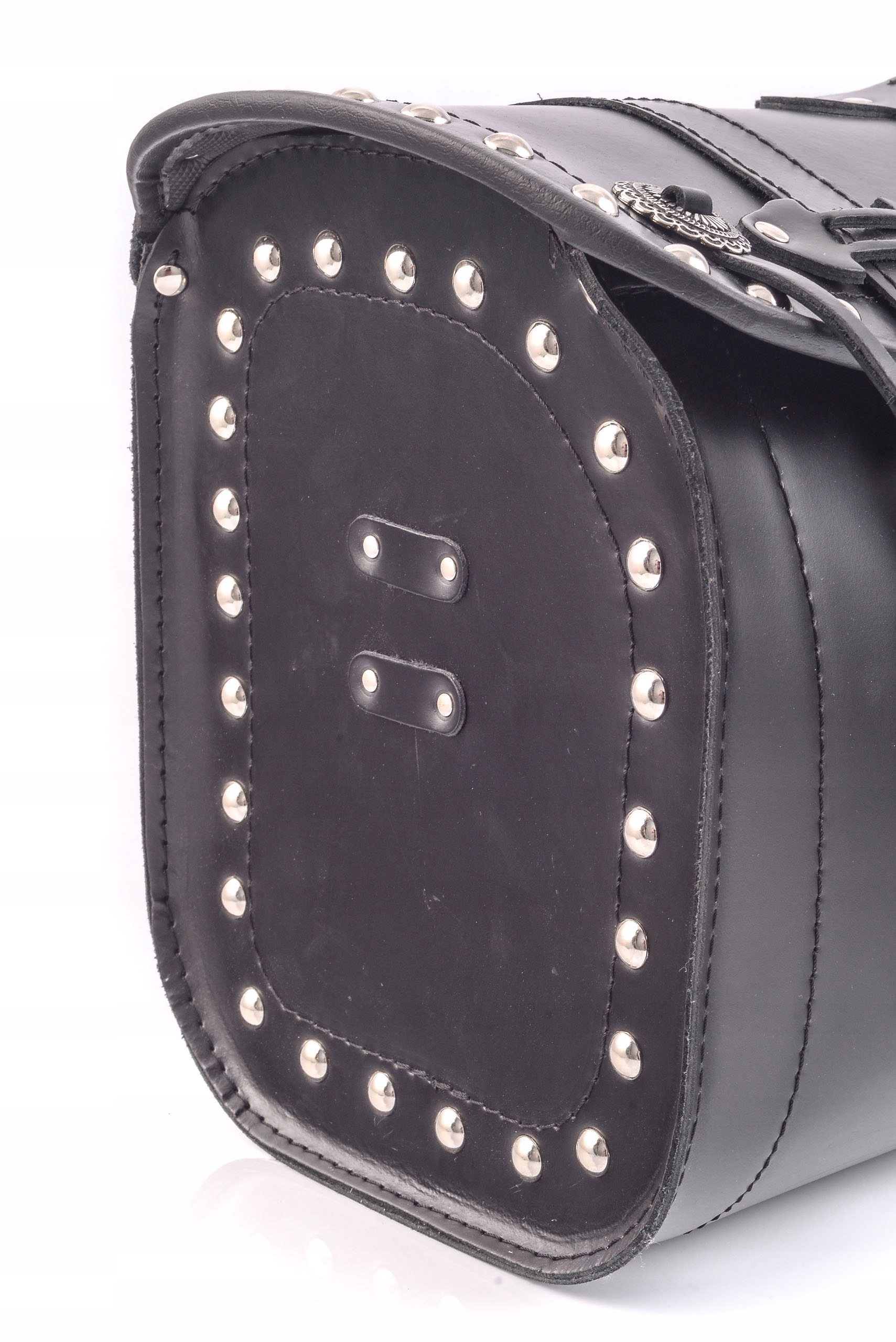 - дополнительно украшен заклепками и отметками с бахромой,