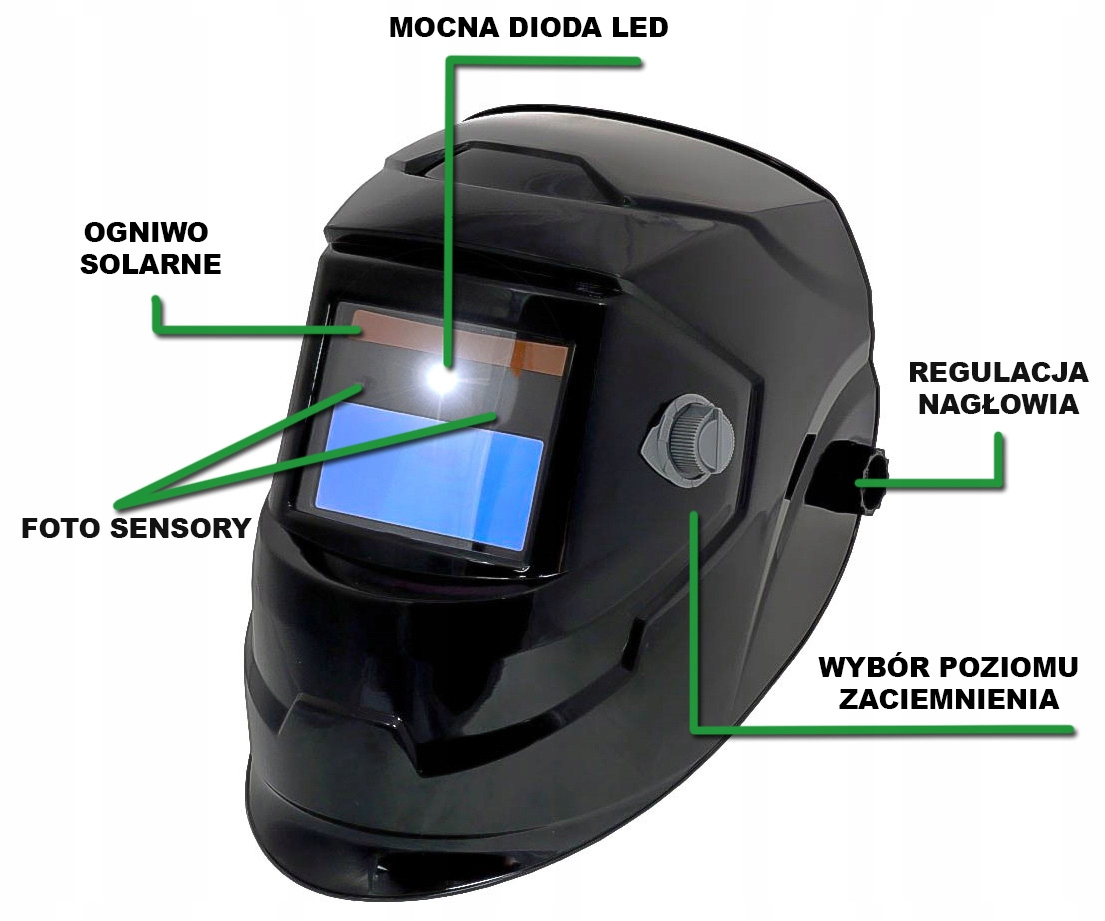 маска подходит для сварки несколькими методами дуговой сварки:защищает пользователя от вредных излучений, образующихся во время сварки, а также от искр и брызгами. Специальный датчик, помещенный в фильтрующий картридж, автоматически определяет начало процесса сварки, вызывая функцию самозатемнения.