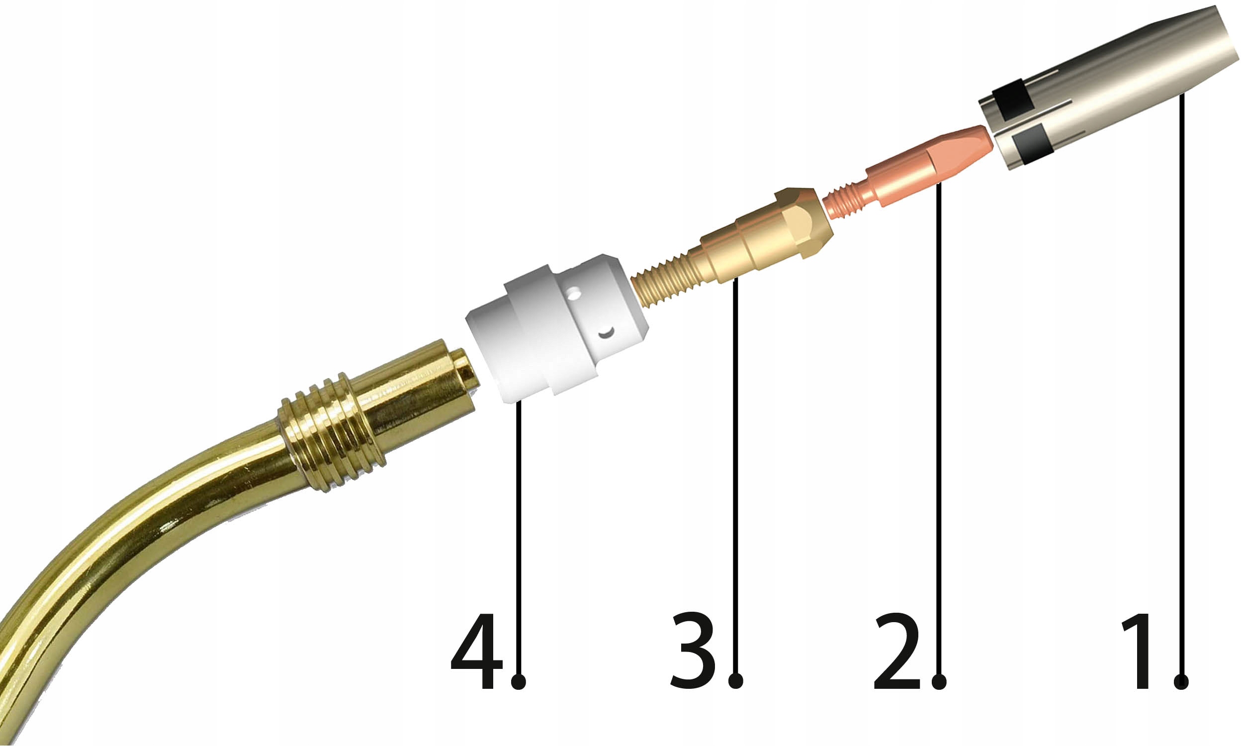 набор основных элементов, необходимых для сварки алюминия методом MIG / MAG держателем стандарта MB 24.п>